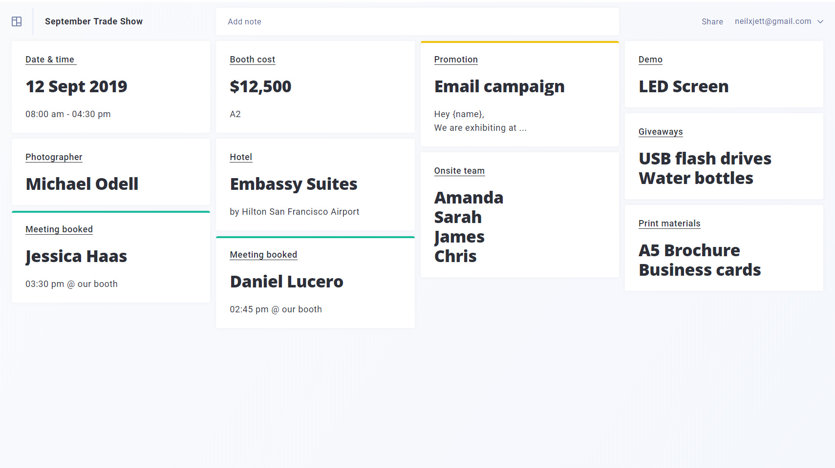 Spake is a free app that helps you to collect, organize, and share key project information. It's designed to focus on small but important bits you need often, especially in the context of a meeting or presentation. It's great for making project overviews, outlining events, planning trips, and building curated collection of links.