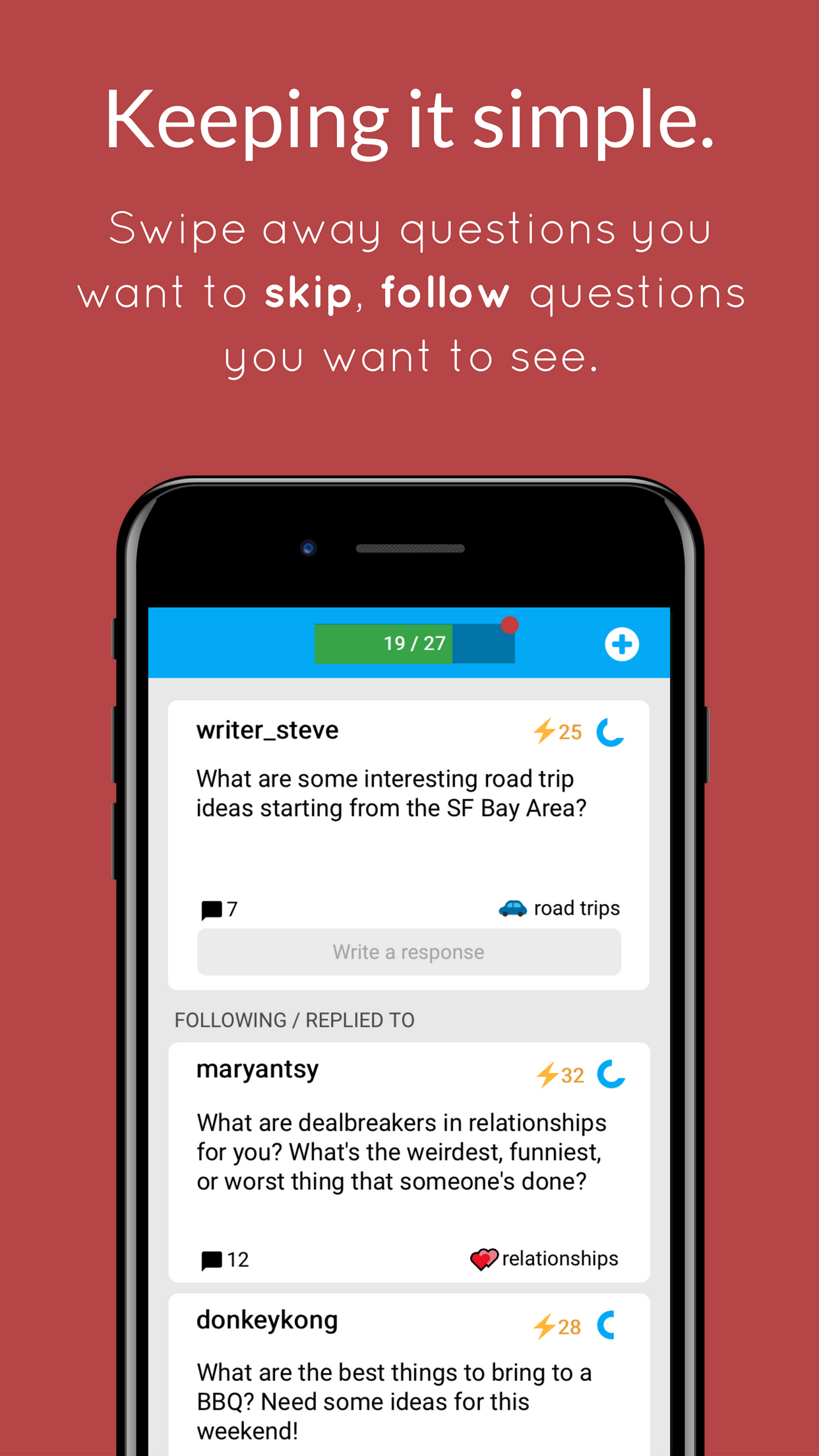 Sparks is a lightweight Q&A app that makes asking and answering questions simple and engaging! If you've ever sparked a conversation with someone at a hostel, a bar, or at school, you know that fascinating experiences are not always on the web. We want to bring that same feeling of discovery and joy to your mobile device. To do so, we are building a knowledgeable and vibrant community that is passionate about everything from startups to scuba diving. Sparks is currently invite-only but apply on our website, tell us what you are great at, and we will send you an invite as we scale.