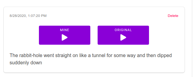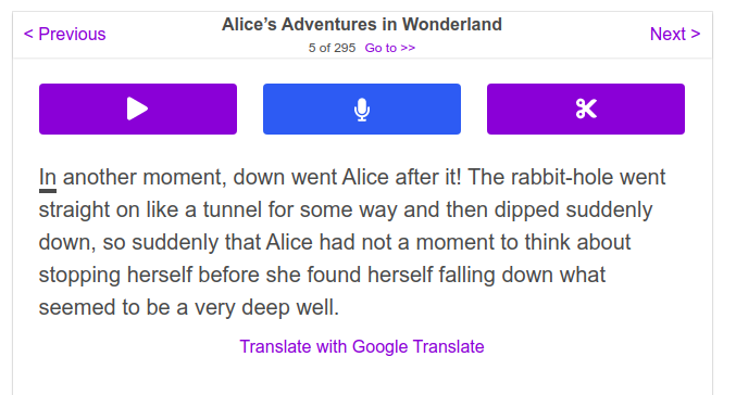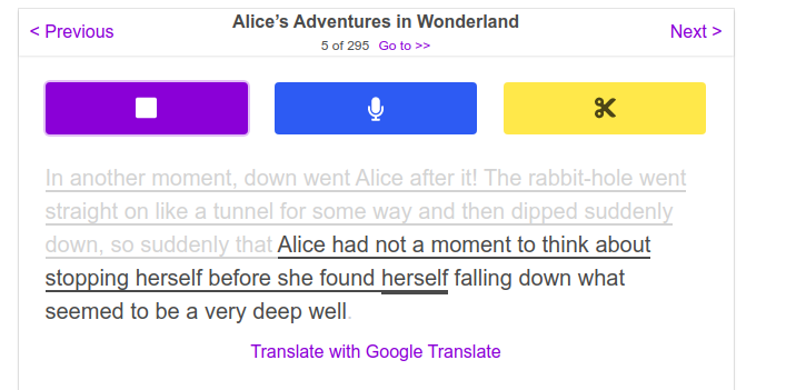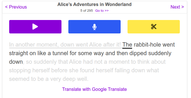 One of the best ways to practice your speaking in a foreign language is the following: 1. Listen to a section from an audiobook 2. Record yourself reading the same section 3. Compare your recording with the original audio While very effective if done regularly over a period of time, implementing this routine in practice can be time consuming and tedious. This causes many people to give up early in the process SpeakyReads takes care of all the tedious work and lets you focus on what you should care about most - improving your speaking. For more information visit speakyreads.com