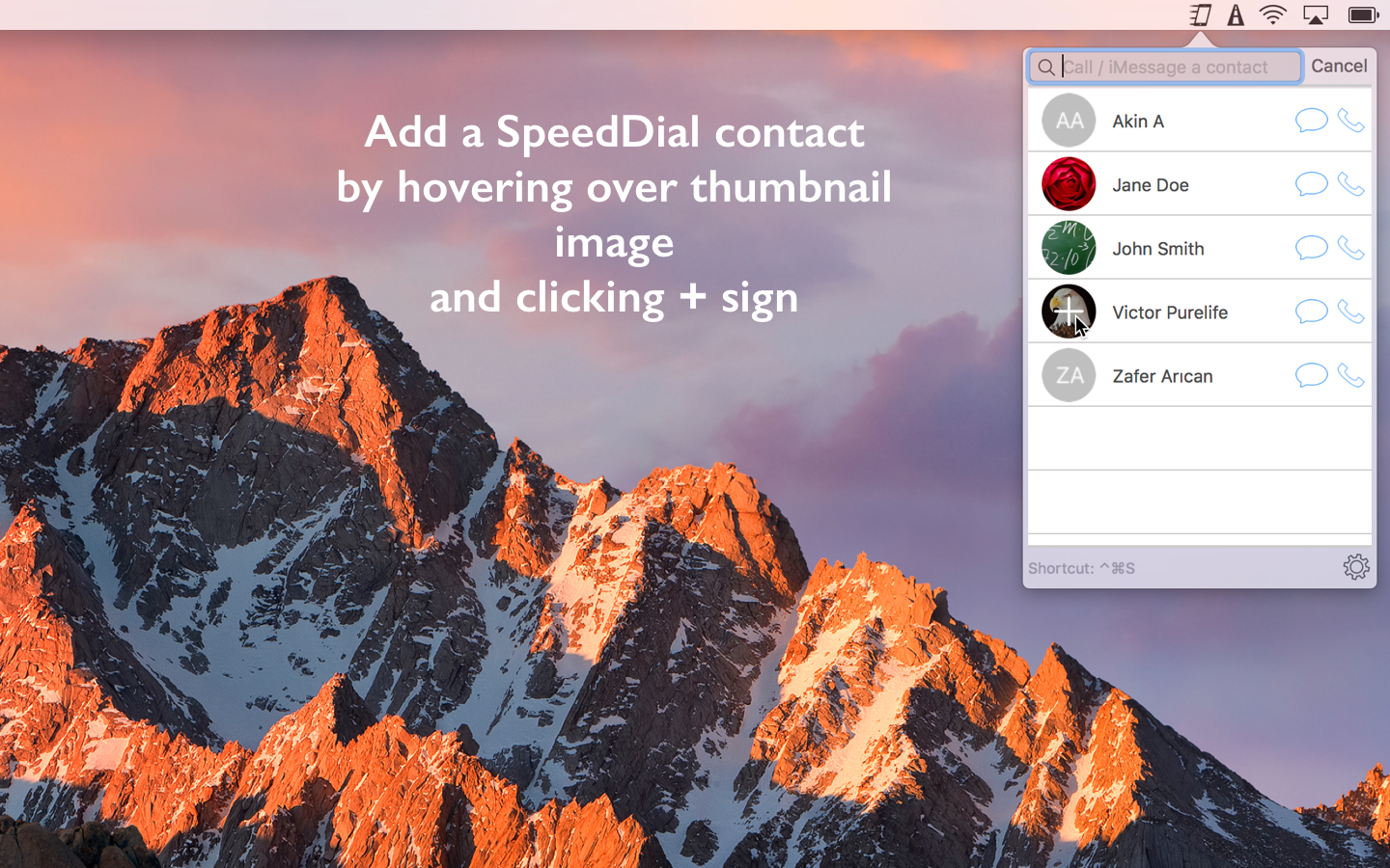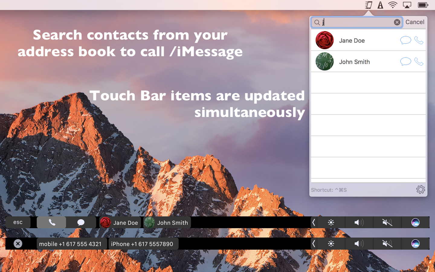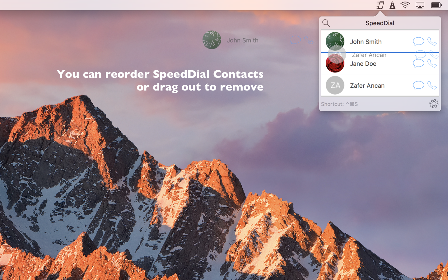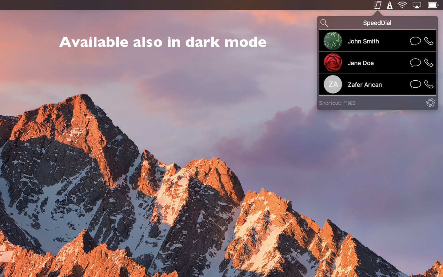SpeedDial lets you call your favorite contacts and send iMessage / SMS messages to them from your Mac with Touch Bar support for new Macbook Pro. Features: * Call your favorite contacts with one click * Send iMessage / SMS to your favorite contacts with one click * Call or send iMessage to any number or a contact in your addressbook * Your contacts are on Touch Bar. * Menubar app: It is available all the time regardless of open app. * Auto-launch: When enabled, the app will be available everytime you log in to your computer * Keyboard Hotkeys: You can open the app using Cmd + Ctrl + s (You can assign a custom hotkey too.) * When the app is active, pressing keys from 1 to 9 will call the corresponding SpeedDial contact. Similarly, Option + keys (1 to 9) will send iMessage / SMS to corresponding SpeedDial contact. * Dark mode: It is available in both normal and dark mode themes