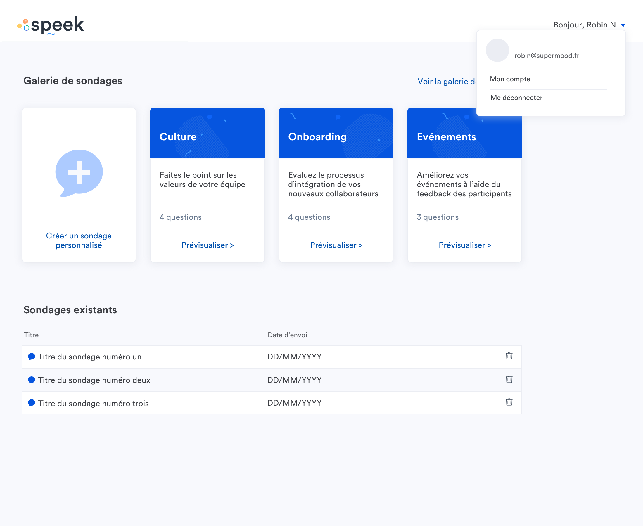 Chez Speek, notre mission est de vous aider à récolter le feedback de vos collaborateurs de manière simple et efficace. Ne prenez plus une décision sans savoir ce qu'en pensent vos collègues : récoltez des retours sur les sujets qui vous importent !