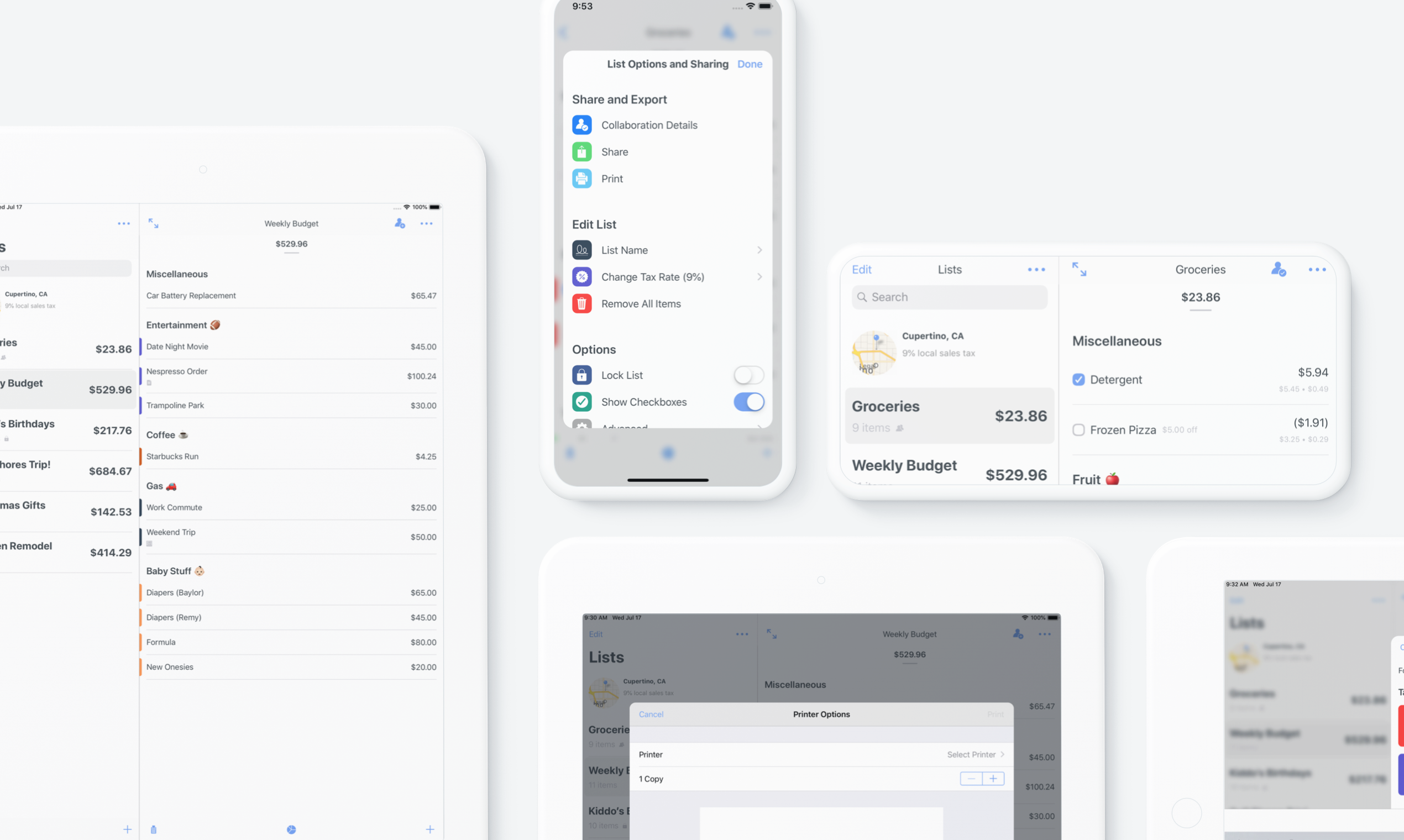 Spend Stack is a list app built on iCloud that keeps a to-the-penny running total of its item's costs. You can share and collaborate on them with anyone.