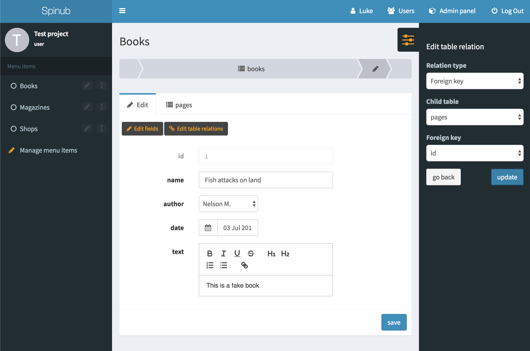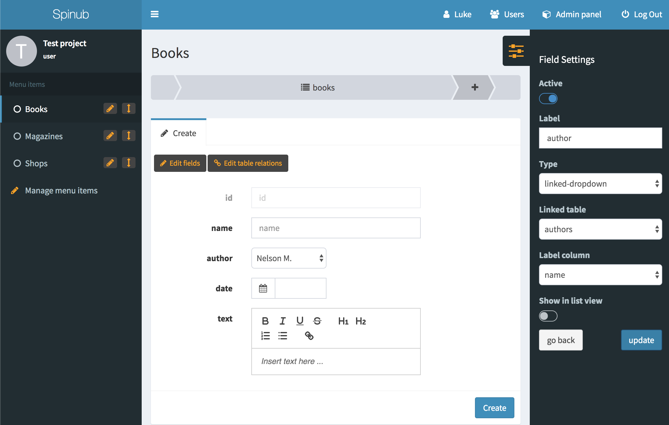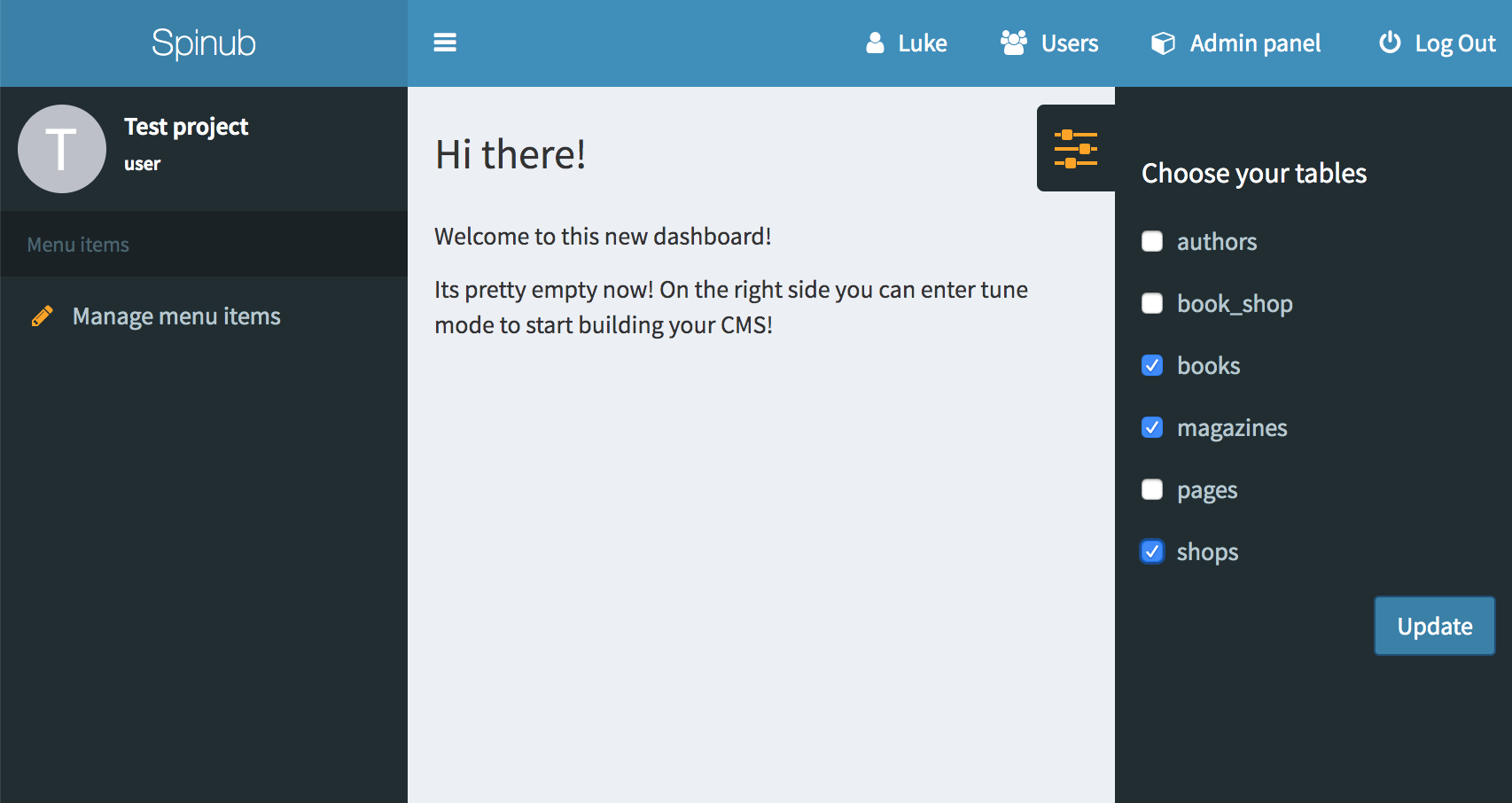 Spinub is an online CMS which you can use can connect to all your projects. With Spinub you have never spent time on building a custom interface for your clients.