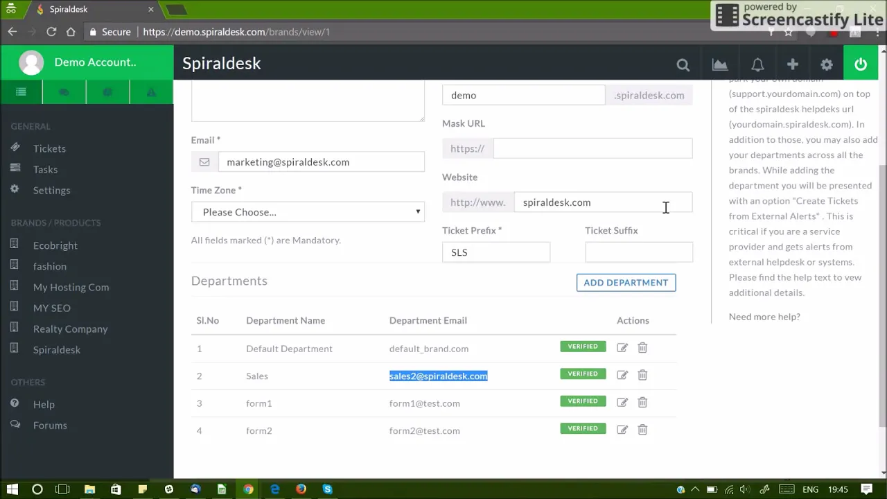 Spiraldesk is a Web Based Help Desk Software that allows you to manage support for Multiple Organization Units from Multiple Channels such as Email, Facebook, Custom Contact Forms etc and show them at one place. The Agents belonging to each Organization Unit , gets access based on their roles. The product is Cloud-based with Subscription billing model, where the infrastructure is hosted and managed by Spiraldesk team.