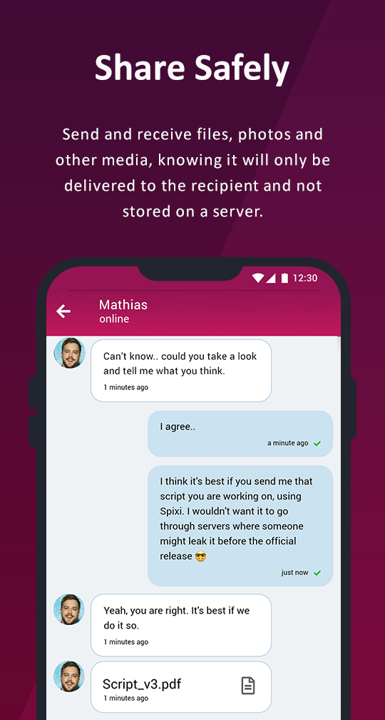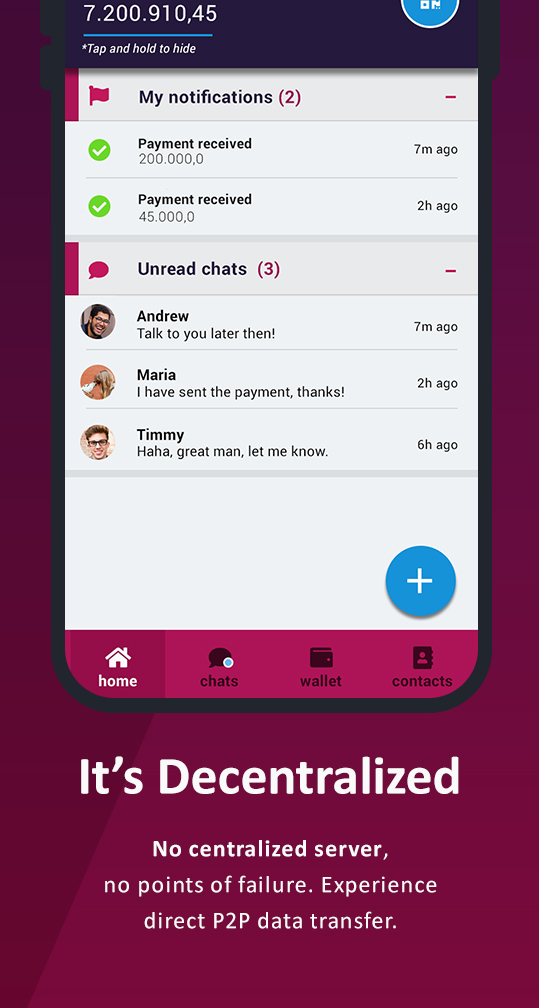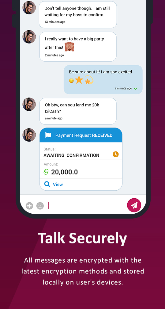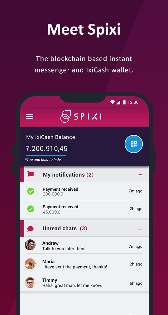 Spixi is a next generation instant messenger. It utilizes blockchain technology to provide a secure and private chat experience. All communication and messages use end-to-end encryption, which means that only the intended recipient can view your messages. Integrated wallet allow you to send payments within the chat as easy as sending messages. NOTE: Spixi and Ixian technology is still being developed and is considered a beta. New features and fixes will be implemented with each update. We will appreciate any issue report or feature suggestion. Key Features: - No verification, no phone number and no personal data is required to use Spixi. - No central servers, no points of failure. Your messages will be delivered as long as both you and the recipient are online. - We do not store any information about you or your usage of Spixi. Your messages and who you chat with is your business. - All messages and data are encrypted with the latest encryption methods and stored locally on your device. Chat securely with your friends and family. - Share your files securely, all data sent through Spixi is delivered directly to the recipient, there are no centralized servers for your data to pass through. - An easy to use cryptocurrency wallet is included in Spixi. Send and receive payments as easily as you send a message to a friend. View your wallet activity and send payments in chat. - The decentralized architecture behind Spixi allows for a virtually no downtime service. As long as you and your counterpart have internet connection, you will always be able to chat and exchange data. There are no central points of failure. - Spixi is entirely open source software. You can report issues, build from source or review Spixi's code on our GitHub repository: https://github.com/ProjectIxian/Spixi. Download Spixi and never worry about somebody reading your messages. Send and receive payments with the integrated wallet. Chat without worrying that third parties might read your messages.