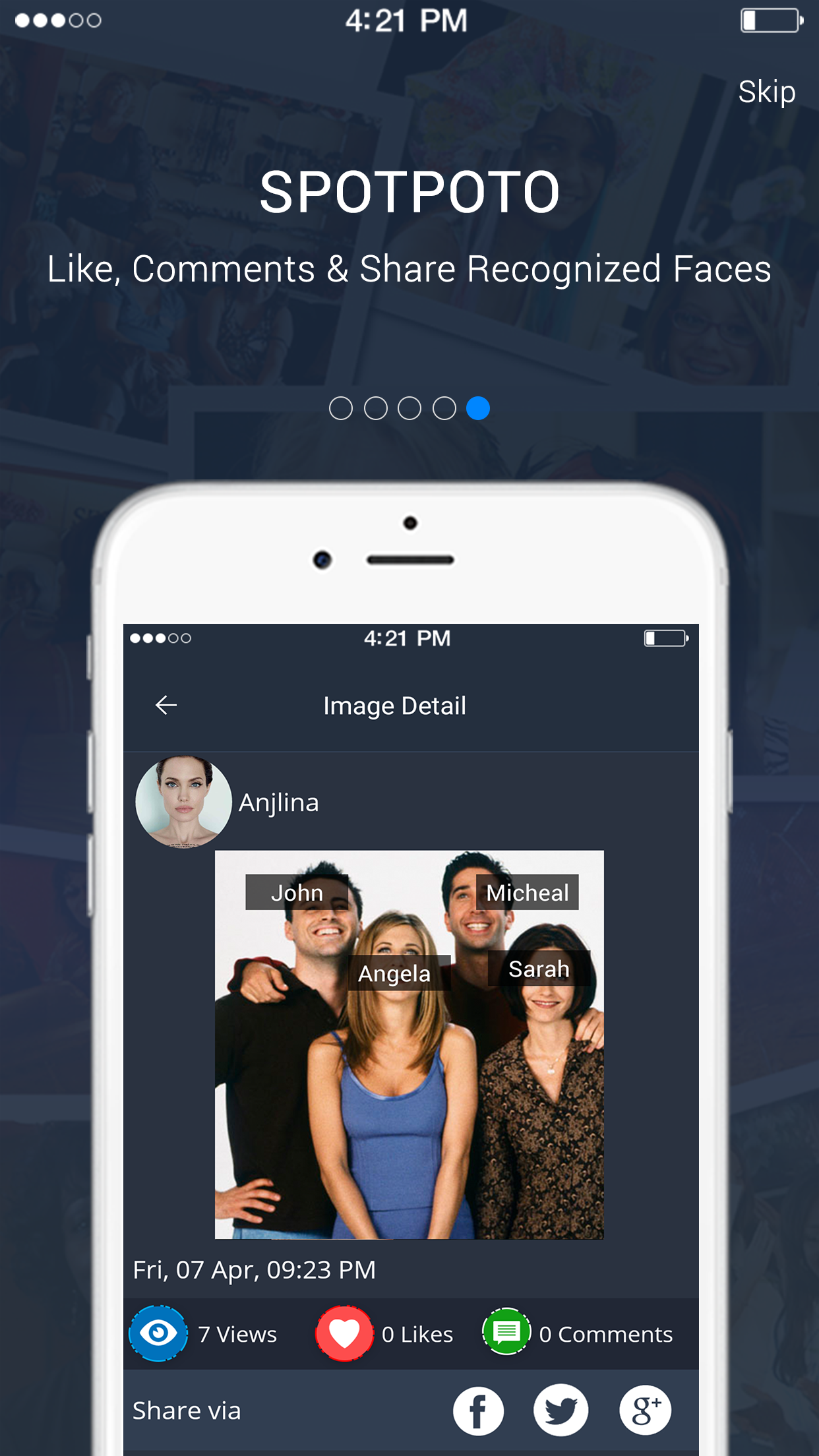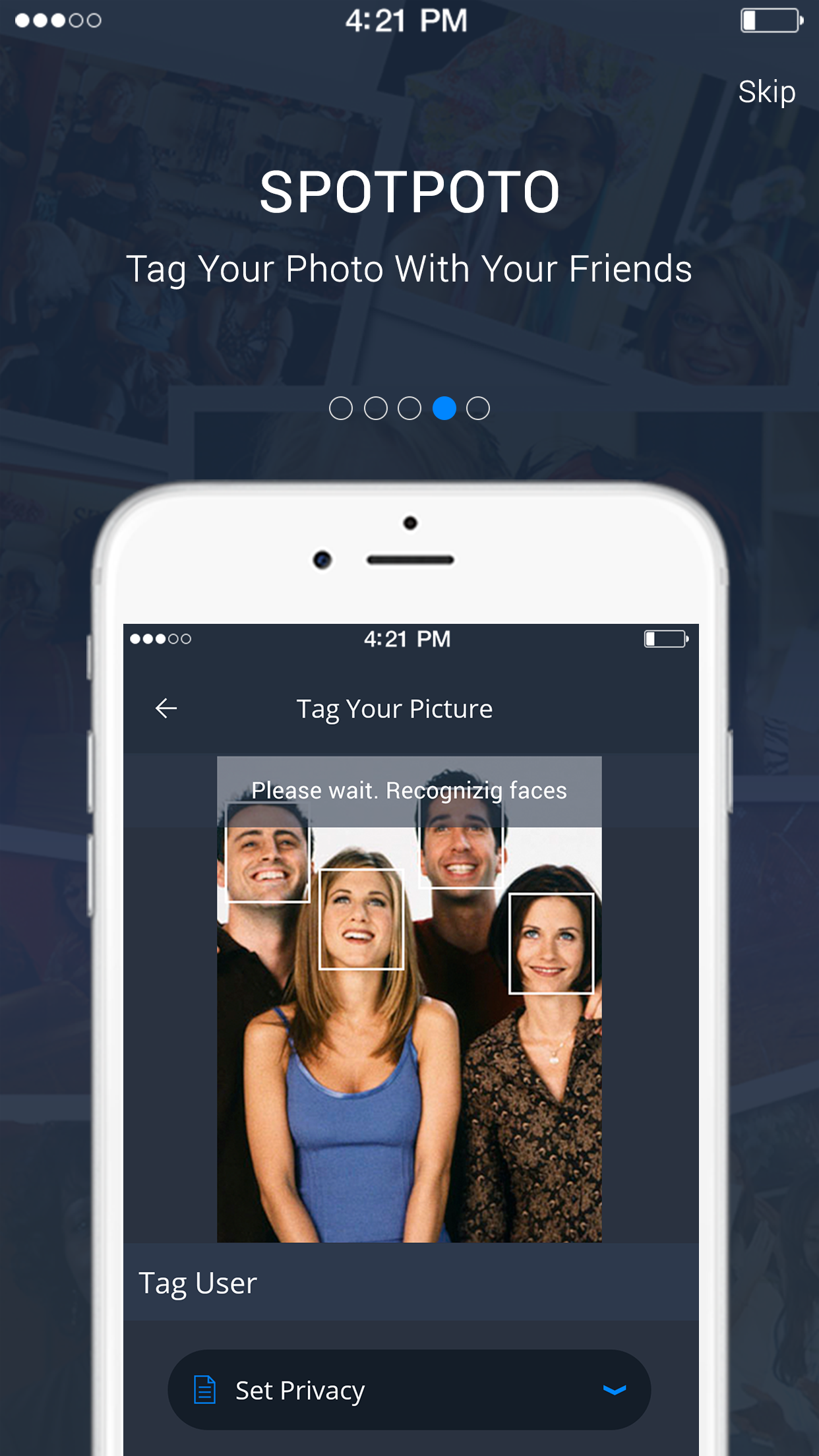 Spotpoto is a new and innovative application that is designed to detect faces thanks to a facial recognition software. The application presents a social photography network where users can upload their pictures and tag people the first time they do so. All the pictures will be uploaded to the gallery and users will be able to set them as public or private. After that first step, every time you upload a new picture featuring someone you've previously tagged, the application will quickly identify who it is and will tag them accordingly.