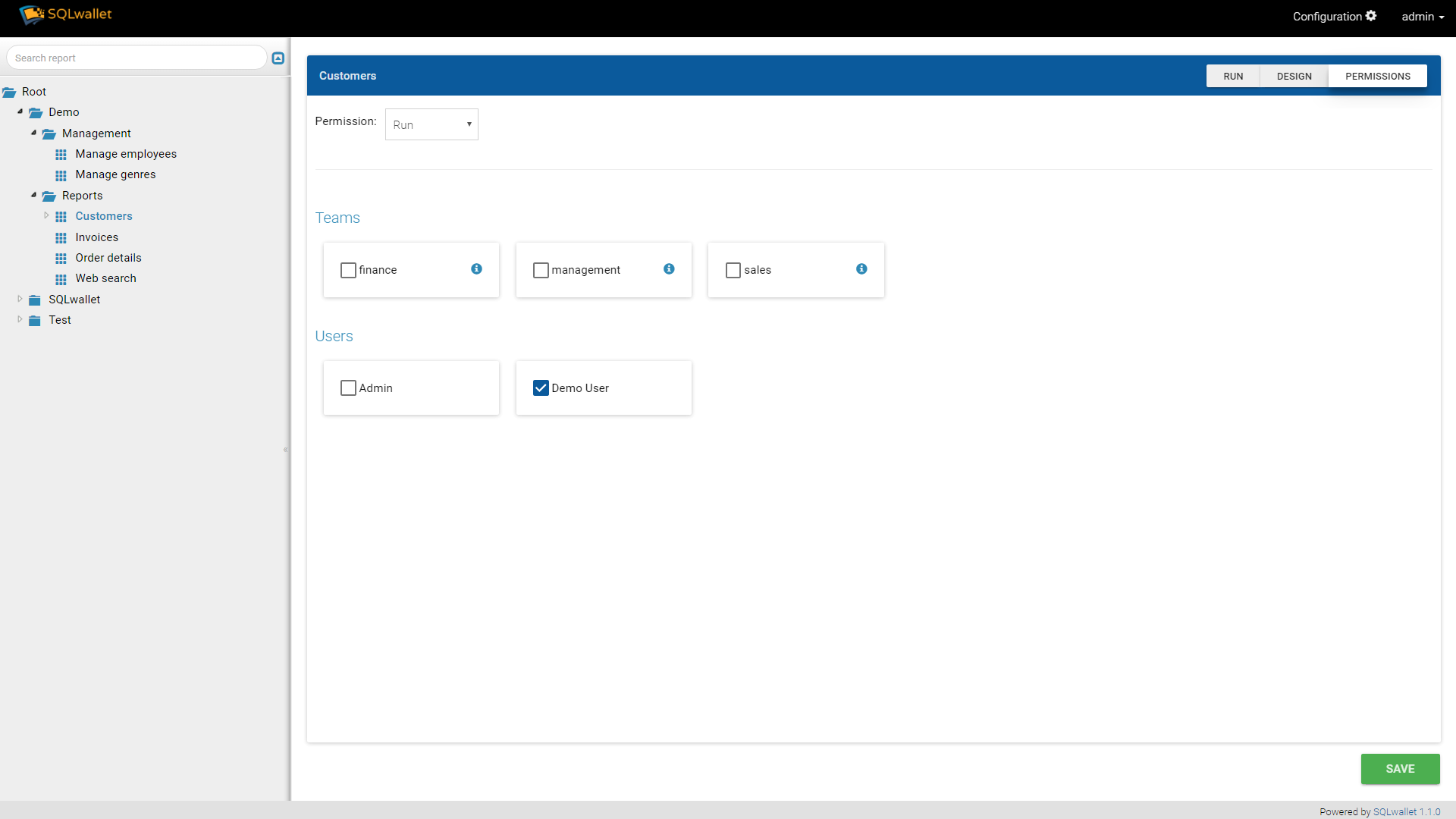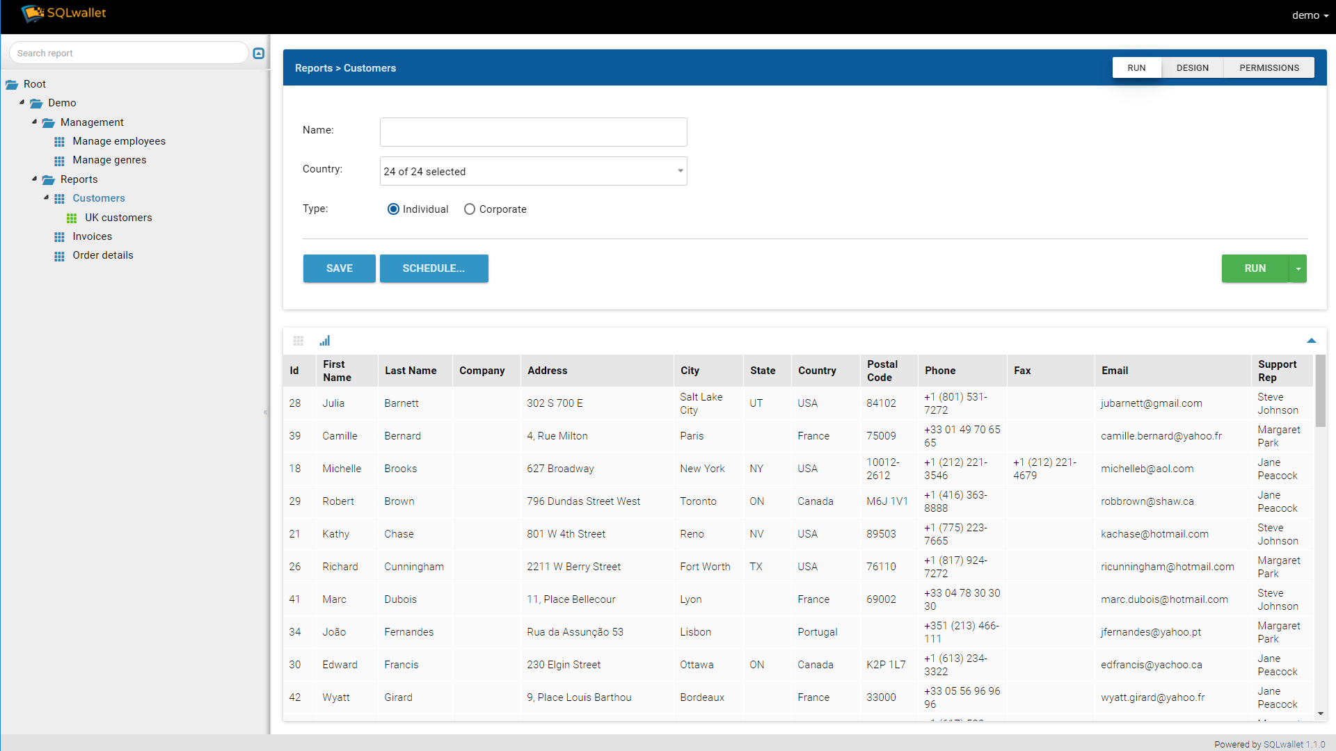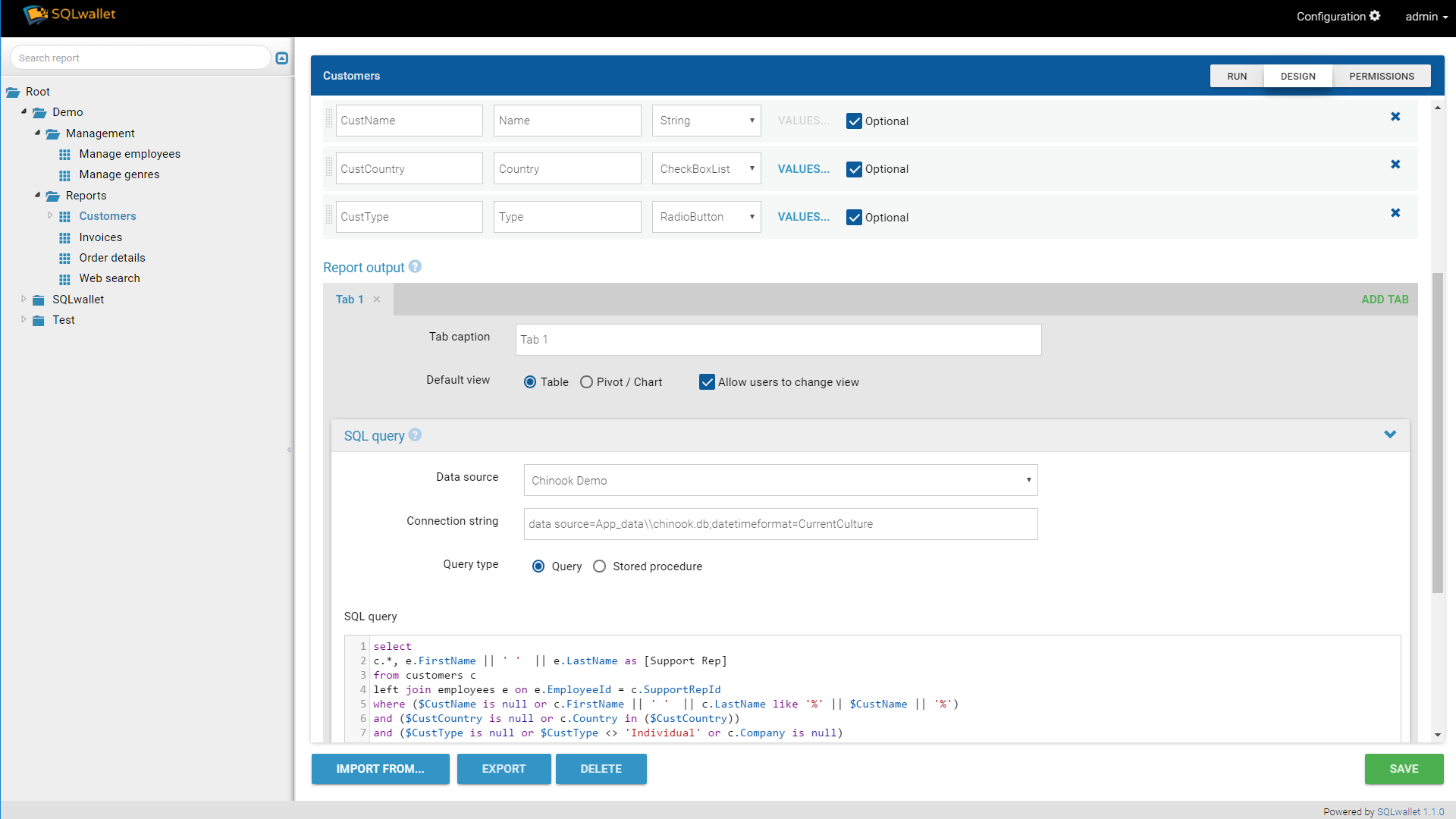SQLwallet's mission is to streamline day-to-day ad-hoc report creating and close the gap between developers and business to get away of data being sent in attached spreadsheets. SQLwallet server allows to create table and chart reports from SQL queries, with advanced permissions management, auditing, variety of filter parameters, output formatting, scheduling and automation capabilities. It is possible not only to retrieve data, but also to modify data in DB through editable columns, that allows to create CRUD applications in minutes. SQLwallet reports can be embedded into existing applications. or run as a reporting portal under your company branding. All major databases are supported.