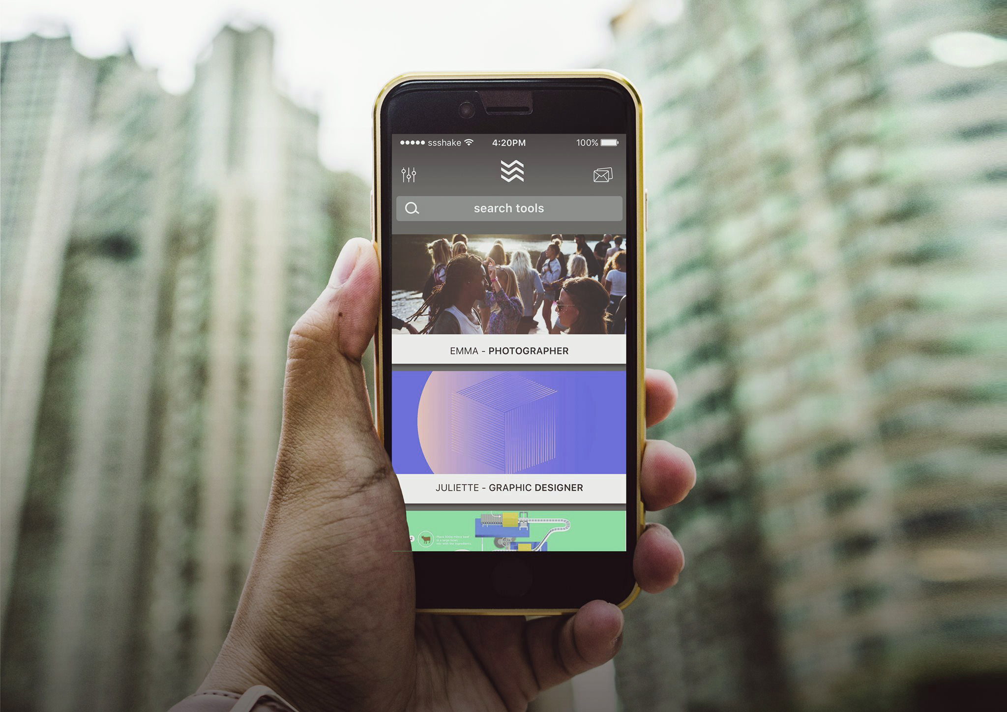 Exclusively dedicated to creative collaborations, the SSSHAKE app locally connects creatives from different industries such as visual arts, dance, design, film, fashion, music, advertising, writing and more, to help creatives discover new projects together.