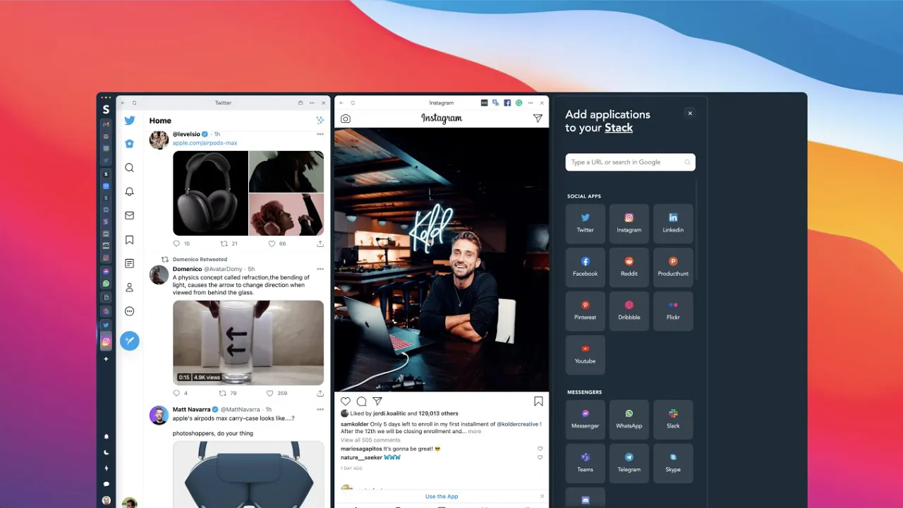 Stack is a smart browser that makes it possible to open web apps side-by-side. Instead of tabs, Stack has cards that can be organized/grouped into stacks. for more efficiency, stacks can be grouped together to create different workspaces. These are Stack's unique features: - Parallel Screen View - Stacks - to sort your apps by types or projects - Sync - Ghost Cards - Focus Mode - Multiple Accounts/private session - for those who manage multiple social media Willing to boost their productivity even more? we offer STACK PRO - A subscription-based version of Stack with special features like Workspaces, Extensions, Auto-Refresher, and more