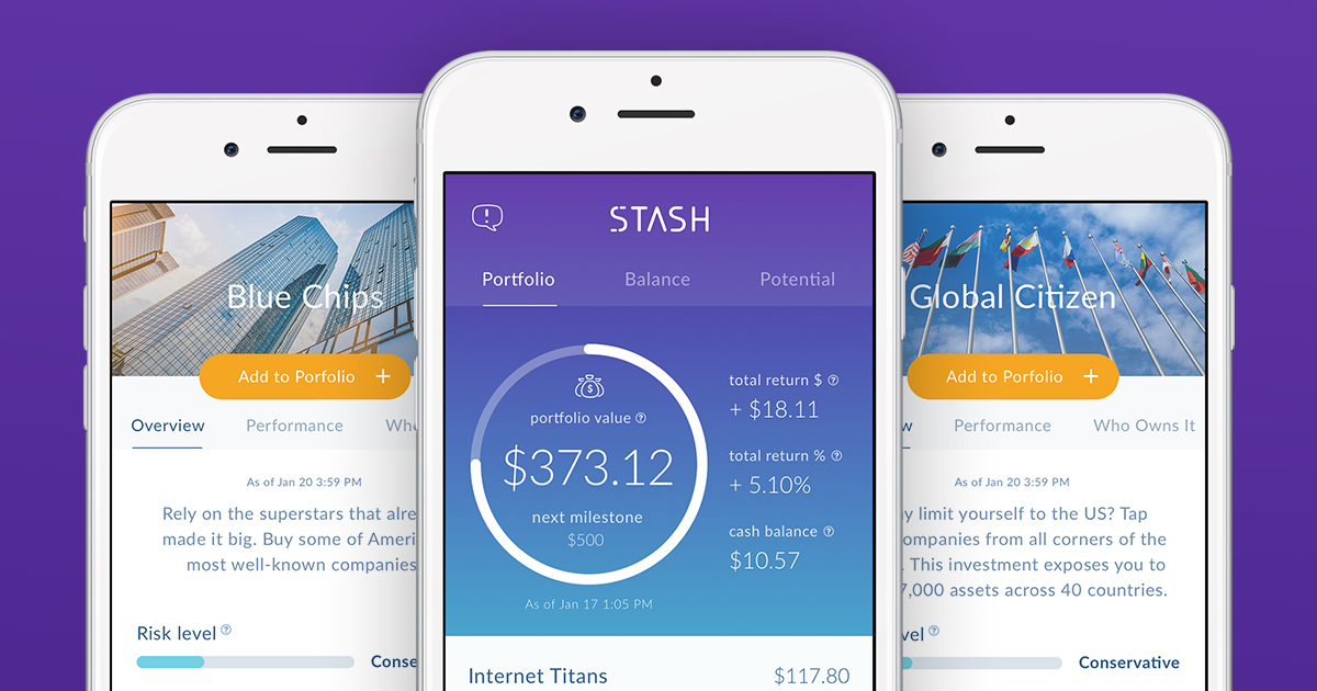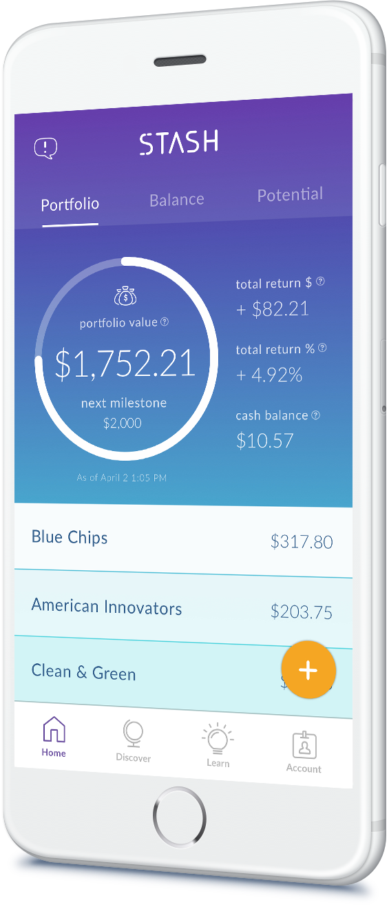 We started Stash to simplify investing, but our true mission runs deeper. Today, your financial products too often fail you. We believe everyone should have access to financial education, technology, and services that help them achieve their life goals. -Stash Become an investor in just two minutes with as little as $5. -Build We'll help you pick an investment strategy that reflects your interests, beliefs, and goals. - Learn Keep learning from tips and articles, so you can invest with confidence.