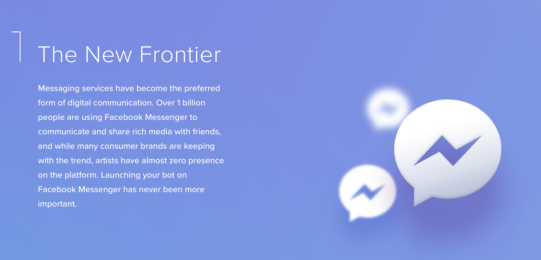 WHAT IS BOT1 ? The next generation of artist marketing has arrived. Bot1 is the best and quickest way to launch your artist bot. Cut through the noise and reach your fans in an interactive and engaging way using our platform that integrates with your existing channels and gives your fans a central hub to find and interact with your music, videos, merchandise, tickets, news, and social posts. We’ve built a platform that makes it easy to launch campaigns around your music, merchandise, and tour announcements. Our dashboard provides insights that help you understand your audience and how they engage with your content.