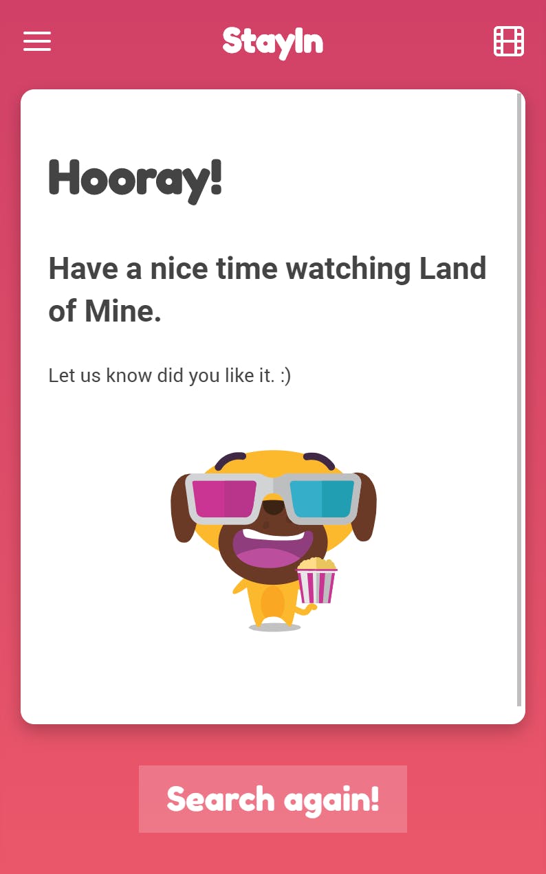 We are a team of dedicated web developers and genuine movie buffs! Actually, my wife got an idea for this app - she used to spend countless hours picking a movie to watch! Idea was to create fun, easy and fast app that will pick a perfect movie in less than 10 seconds. What do you think - have we succeeded? :)