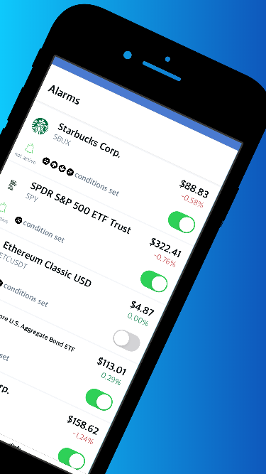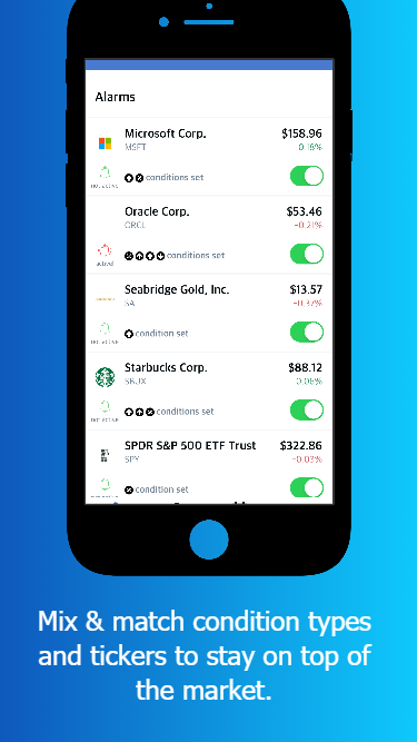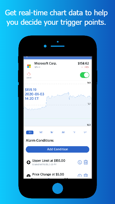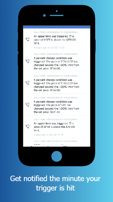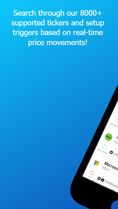 Never again settle for setting limit orders before going to bed and hoping for the best. Stop checking your phone during work to find yet another lost opportunity. Developed by traders for traders, Stock Alarm allows day/swing traders from all backgrounds to set conditional alarms to be triggered from live stock price movement. Features: - Customized calls and or push notifications per alert - Upper and lower limit alerts - Price/percent change target alerts - 5, 30, 50, 100 and 200-day moving average alerts - Graphs to easily visualize the stock price history - Over 8000 stock tickers supported - Active development and new triggers added every day!