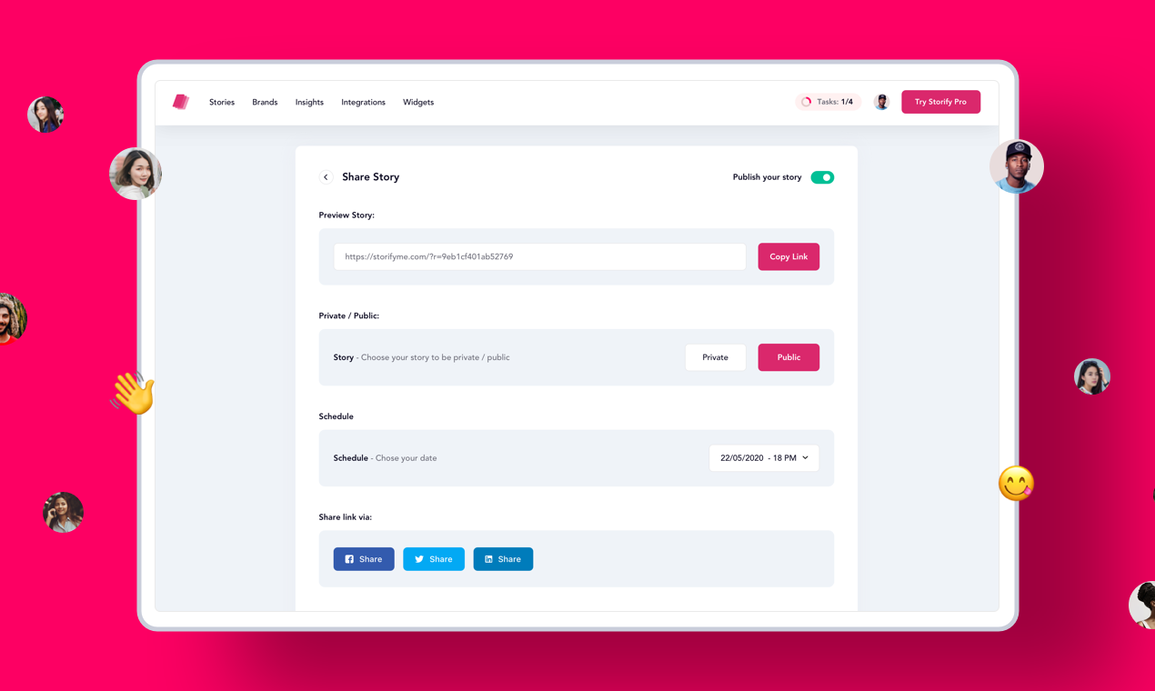 StorifyMe pioneers how merchants compose and ultimately own compelling and influential mobile-first experiences, by bringing the familiar tappable format, known as stories, to the open web. This allows merchants and brands to break free from an isolated ecosystem and deliver relevant contextual content to their customers, while keeping them firmly in control (and ownership) of their content.? Also, customers are able to consume content in an immersive, vertical format without any distractions. StorifyMe is tailored to e-commerce, but also made for having fun.