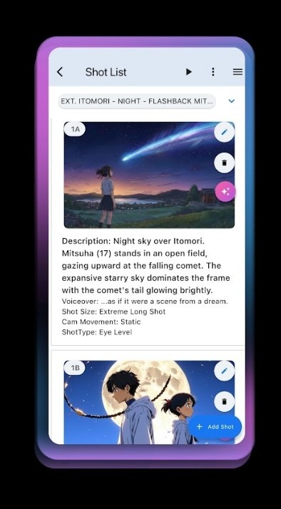 Studiovity Storyboard Software helps filmmakers, directors, and production teams visually plan their scenes before filming begins. Designed specifically for film and video production workflows, the platform makes it easy to create detailed storyboards that clearly communicate shot composition, camera movement, and scene structure. With Studiovity, users can quickly generate visual storyboards for their scripts, helping directors and cinematographers plan each shot with precision. The software allows teams to organize scenes, add shot descriptions, and visually map out the entire sequence of a film. This makes it easier for production teams to understand the director’s vision and prepare efficiently for filming. One of the key advantages of Studiovity is its AI-powered storyboarding capabilities, which help users generate storyboard visuals quickly while maintaining consistent characters and scenes. This feature helps filmmakers speed up the pre-production process and visualize their stories faster than traditional storyboarding methods. The platform also integrates seamlessly with other production planning tools such as shot lists, script breakdown, scheduling, and call sheets. This allows filmmakers to convert storyboard plans directly into production-ready shot lists and schedules, creating a smooth workflow from concept to production. Studiovity Storyboard Software supports collaboration across departments, enabling directors, cinematographers, and production designers to work together while planning scenes. Team members can review, update, and refine storyboards to ensure every shot is clearly defined before filming begins. Accessible on web, Android, and iOS devices, Studiovity allows filmmakers to create and manage storyboards from anywhere. Whether working in the production office or on set, the platform ensures that visual plans remain organized and accessible throughout the filmmaking process. By combining AI-powered visual planning with professional filmmaking tools, Studiovity Storyboard Software helps filmmakers save time, improve creative communication, and streamline the pre-production process.