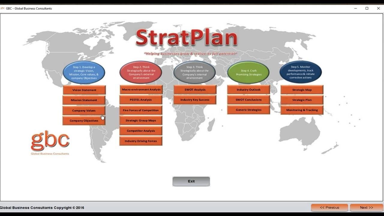 StratPlan is our patent-pending custom-developed strategic planning software tool that simplifies the planning process by enabling practical use of a range of analytical tools such as PESTEL analysis, Porters five forces of competition, SWOT analysis, competitor analysis, industry key success factors etc. Our tool is flexible so that business owners, managers, or CEOs can use and capture their expert knowledge about their business and industry. This enables the planning to be specific and realistic. Most importantly, our tool provides tangible outputs such as a Strategy Map, a Strategic Plan and a Monitoring & Tracking dashboard. Our StratPlan tool reduces the planning process from months to days. Now everyone can be on the same page and pull in the same direction.