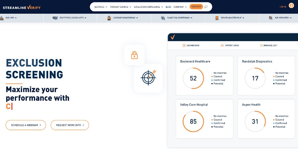 Since 2011, Streamline Verify leads in Exclusion Screening Automation. 1,350+ licensed customers, 15,000+ users across 46 states trust us. Our scalable application screens 6,000 records/60 secs, ensuring swift results. Top-tier support and reporting streamline your compliance.