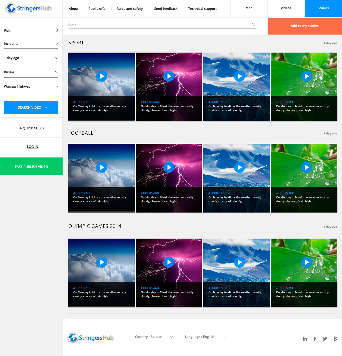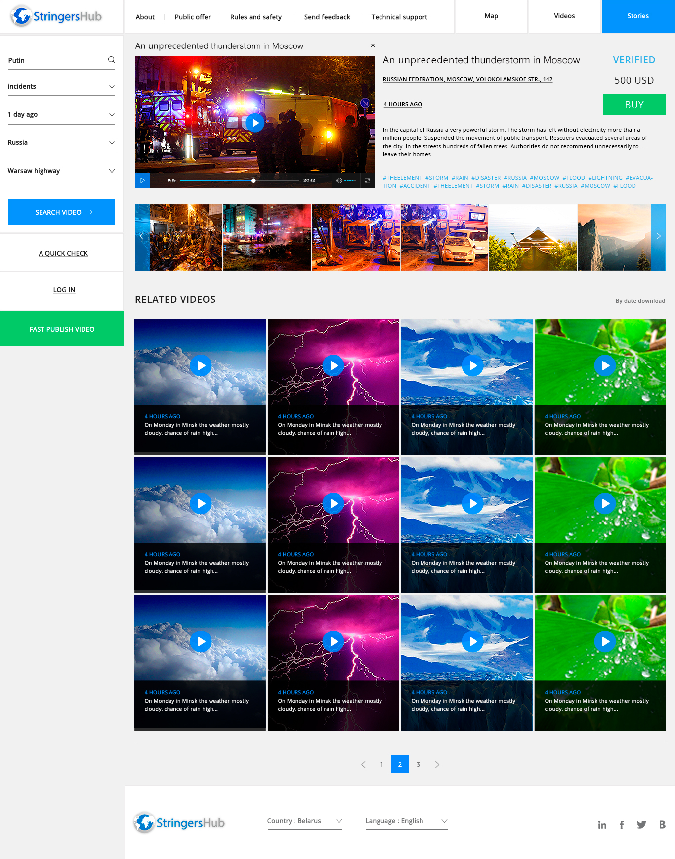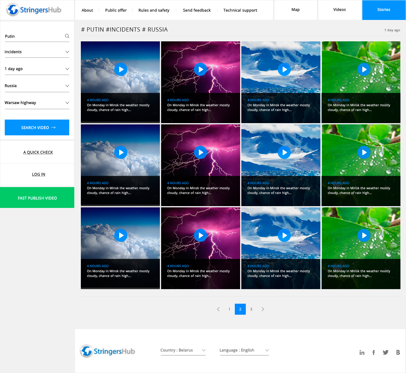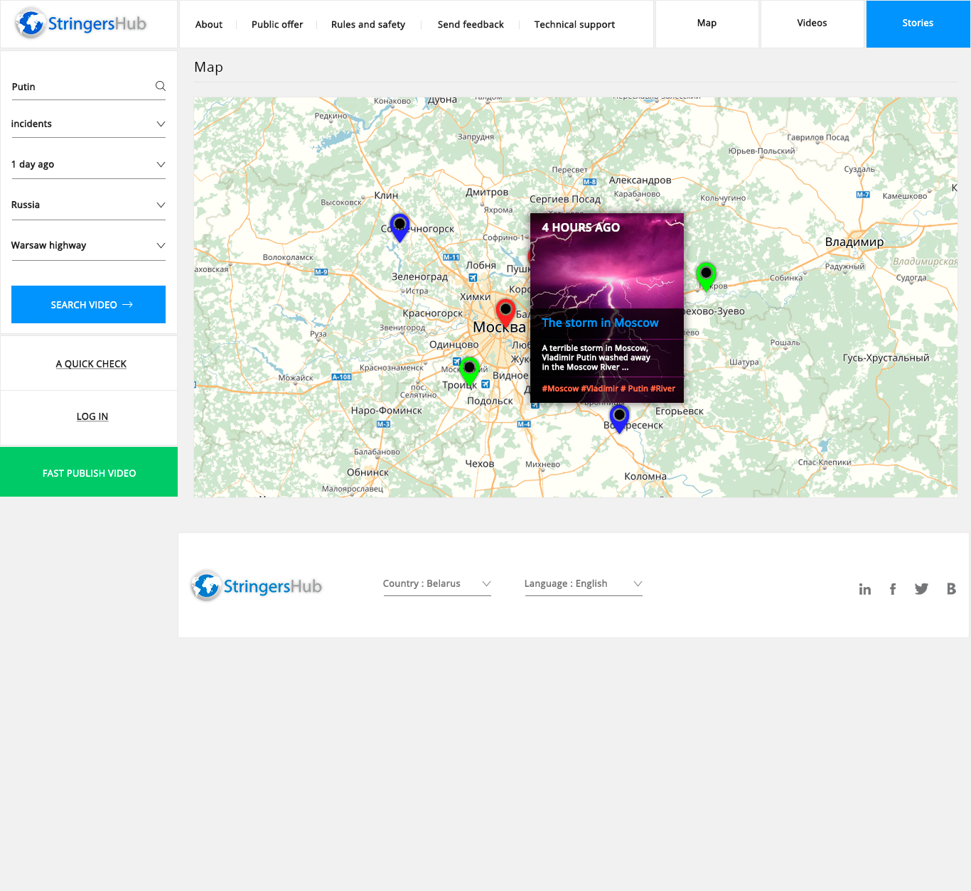 StringersHub is a media platform that connects professional videographers and eyewitnesses with media producers and editors who need and use video content. On the platform, media companies can quickly send a video shoot request or find ready-to-use footage in the gallery. Meanwhile, stringers from all over the world can accept the task, complete it, add the footage to the task or upload it to the gallery and get paid for it.