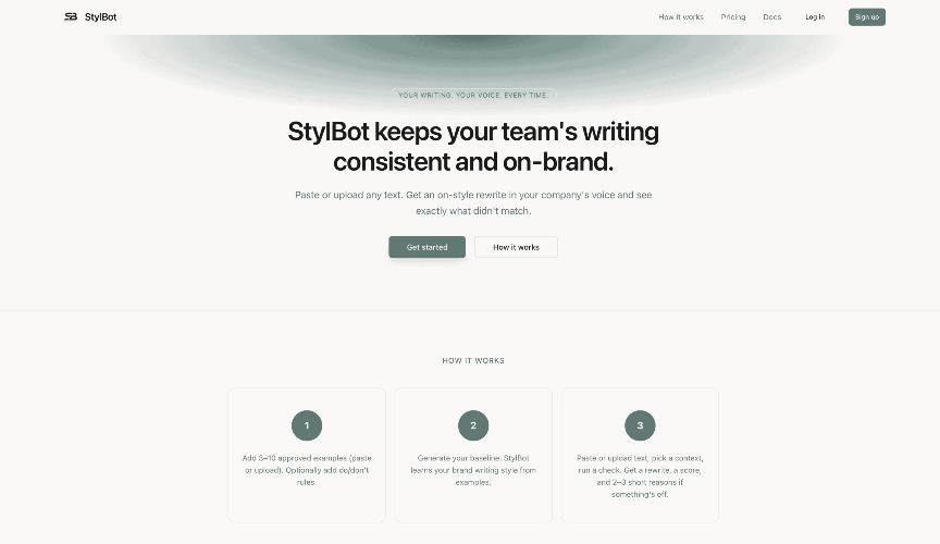 StylBot keeps your team’s writing consistent with your company voice. Paste or upload any text, choose the context, and it rewrites it to match your approved style. You also get a clear alignment score and a short explanation of what didn’t match. It’s built for teams that are tired of fixing tone and rewriting messages. StylBot uses your approved examples as the standard and checks every sentence against it. Everything stay consistent — without guesswork or generic AI tone.
