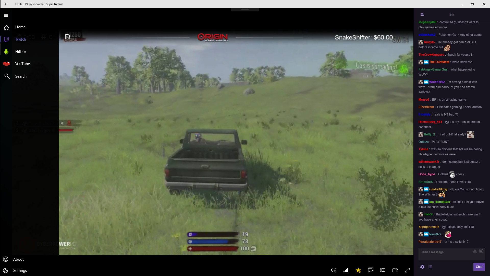 Watch all your favorite streamers on Twitch, HitBox or YouTube Gaming in one app. Favorite/Unfavorite, chat, customization and more. Beam support coming soon.