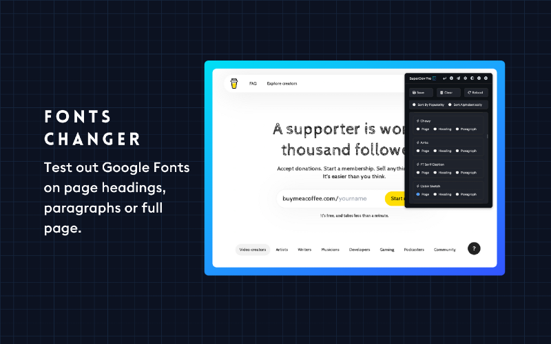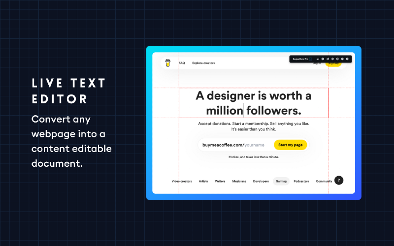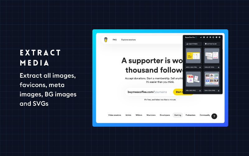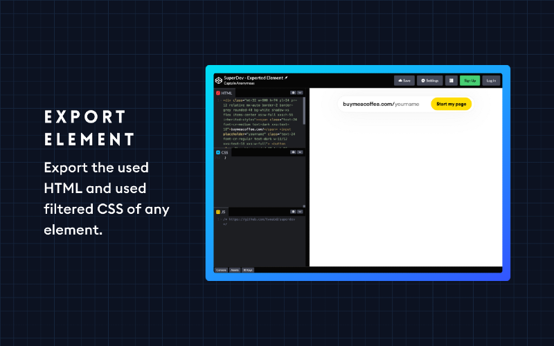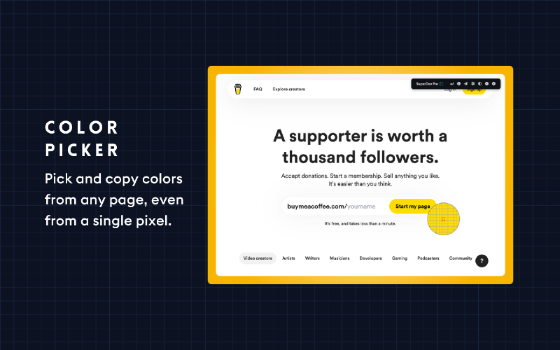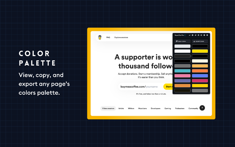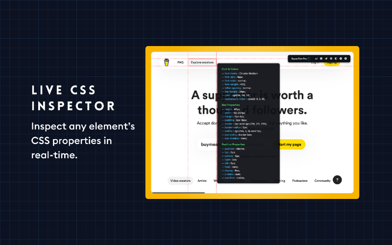 Say goodbye to tedious debugging with Chrome Devtools. With SuperDev Pro, you’ll save precious time and elevate your web development and design game. Don’t just take our word for it; try it out for yourself and see the difference. SuperDev Pro is designed with your needs in mind, so you can focus on what you do best - designing and creating amazing websites. Join 4000+ developers and designers who have already made SuperDev Pro their go-to tool for front-end development and take your projects to the next level! Curious about SuperDev’s capabilities? 🛠️ Live CSS Editor — Add, save, and export custom CSS with autocomplete. 🛠️ CSS Inspector — Inspect any element’s important CSS properties. 🛠️ Fonts Changer — Test out Google Fonts on headings, paras, or full pages. 🛠️ List All Fonts — Get all font names, sizes, weights, and how they look. 🛠️ Color Picker — Pick colors from any page, even from a single pixel. 🛠️ Color Palette — View, copy, and export any page’s color palette. 🛠️ Move Element — Move and reposition any page element. 🛠️ Delete Element — Remove/hide any HTML element from the page. 🛠️ Export Element — Export the used HTML and used CSS of any element. 🛠️ Extract Images — Extract all images, meta images, BG images, and SVGs. 🛠️ Page Guideline — Check alignments + visualize padding and margin. 🛠️ Page Outline — Visualise the webpage structure and layout. 🛠️ Tag Highlight — Highlight important HTML tags with diff. background colors. 🛠️ Page Ruler — Measure distance between two points on your browser. 🛠️ Live Text Editor — Convert any page into a content-editable document. 🛠️ Take Screenshot — Take full-page/visible area screen. in JPG/PNG/PDF. 🛠️ Host And DNS — View, copy, and export any website’s IP, DNS, and Host. 🛠️ Clear All Cache — 1-Click clear all cache, cookies, and localstorage.