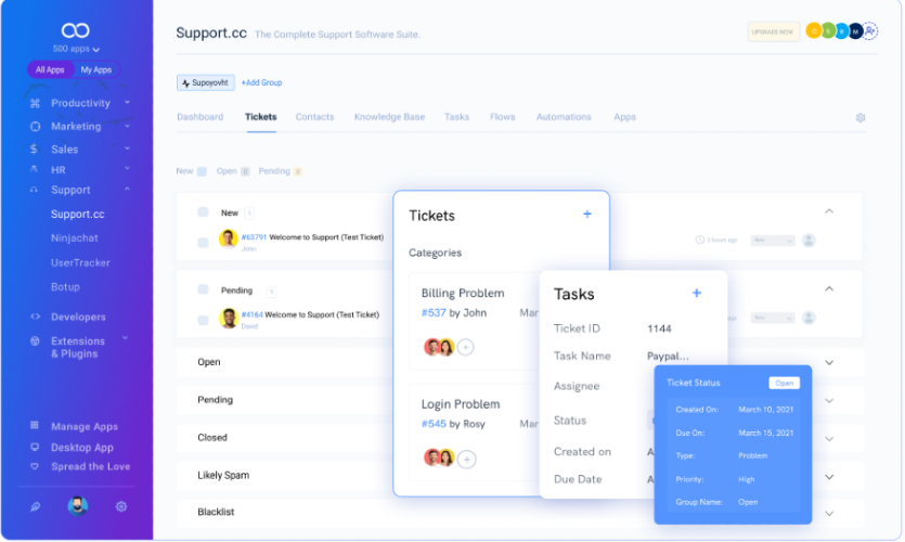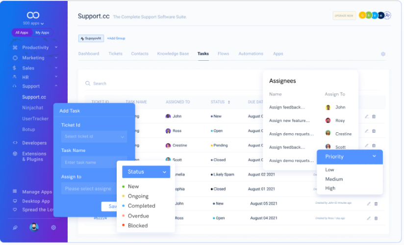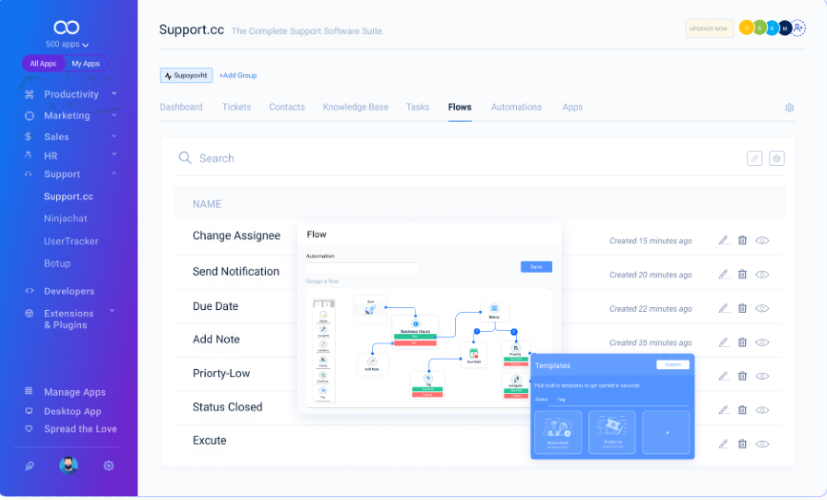Support.cc is a complete help desk software suite that allows you to track and manage support requests, customer feedback, tasks, knowledge base and automation all in one place, to ensure that your customer's queries are resolved effectively. The help desk software has more than 30 integrations which facilitates seamless transfer of potential leads to the CRM of your choice and track user activity With Support.cc, you can efficiently manage your Knowledge base articles and sequence them in the order you want to publish. It also allows the customers to access the brandable knowledge base. A knowledge base can be used to store FAQs, troubleshooting guides, and manuals. You can also create flows with our available designer low-code nodes and automate those flows which saves the time and the manhour put in by the agents. This helps your agents to focus on the queries raised by the customer and provide swift concrete resolutions to your customer.