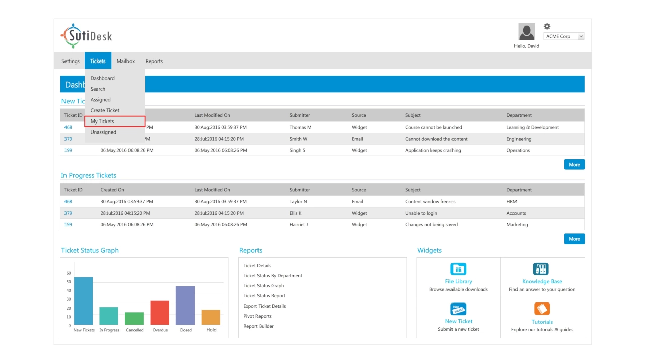 SutiDesk is an integrated help desk solution that helps businesses automate and streamline ticket management processes. The robust features of the software such as ticketing system, knowledge base, self-service portal, and analytics enables support teams resolve tickets faster to enhance customer experience. Extensive reporting capabilities allows you to generate pie, bar, and line graphs for various attributes to give you a glimpse of key support metrics for in-depth analysis.
