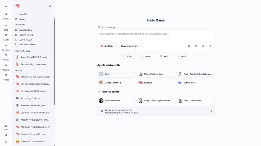 Swiftask is redefining how enterprises deploy artificial intelligence by enabling teams to orchestrate multiple AI models into intelligent, automated workflows without writing a single line of code. Imagine this: Your sales team receives dozens of inbound leads daily. Instead of manually researching each company, scoring the opportunity, and updating your CRM, you create an AI agent that does it automatically. It researches the prospect's industry and revenue, analyzes their needs against your offerings, assigns a qualification score, enriches your CRM with complete data, and notifies your sales rep—all in 30 seconds instead of 15 minutes. Or consider this: Your HR team answers the same policy questions repeatedly. You build a knowledge assistant that connects to your employee handbook, benefits documentation, and internal policies. Now employees get instant, accurate answers 24/7, and your HR team focuses on strategic initiatives instead of repetitive inquiries. This is the power of AI orchestration. Unlike platforms that offer isolated AI tools, Swiftask lets you chain specialized models from OpenAI, Anthropic, Google, and Mistral into seamless end-to-end processes. Monitor competitors weekly by scanning their websites, extracting strategic updates, generating executive summaries, and distributing insights automatically. Analyze customer support tickets, draft contextual responses, translate for international customers, and route to the right team—all in one intelligent workflow. No technical skills required. Business users create custom agents through an intuitive interface: define the agent's role, connect your company knowledge and data sources, configure automation triggers, and deploy in days instead of months. Each agent accesses the optimal AI model for each specific task, ensuring both performance and cost efficiency. Enterprise-grade from day one. Swiftask provides complete governance with role-based access control, audit logging for compliance, and native SSO/SAML authentication. Monitor usage and costs in real-time, eliminate "Shadow IT," and maintain security standards your organization demands. Seamlessly integrated. Connect to 3,000+ business tools through native connectors—CRM systems, cloud storage, communication platforms, and specialized software. Your AI agents work within your existing ecosystem, not as separate tools requiring constant context switching. Proven results across 2,500+ users and 56+ companies: 15 minutes saved per lead qualification, 90% faster internal support responses, hours of weekly research automated. Teams deploy operational AI in days and see immediate ROI through measurable time savings and productivity gains.