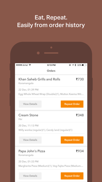 With Swiggy, you can order food online from a wide range of restaurants near you offering multiple cuisines and track your order from the restaurant to your doorstep. What’s more - you can order as much (or little) as you like because there’s no minimum order value. Install Swiggy to order delicious food and avail the offers we have waiting for you on the app!