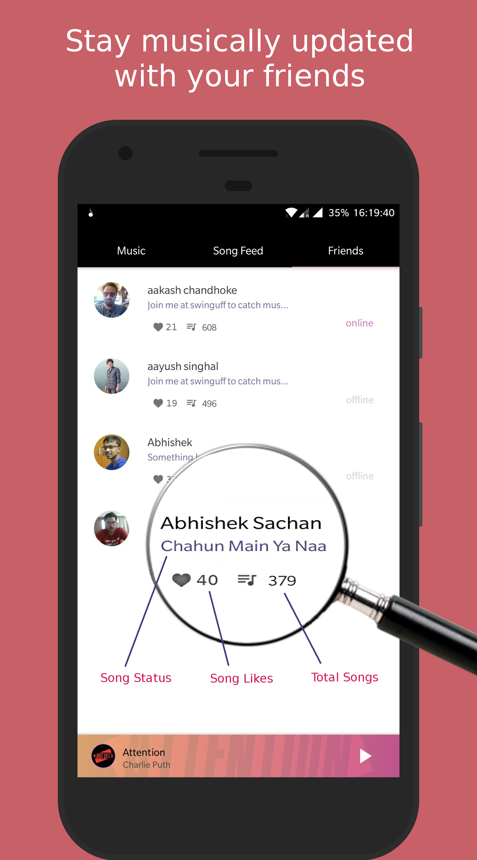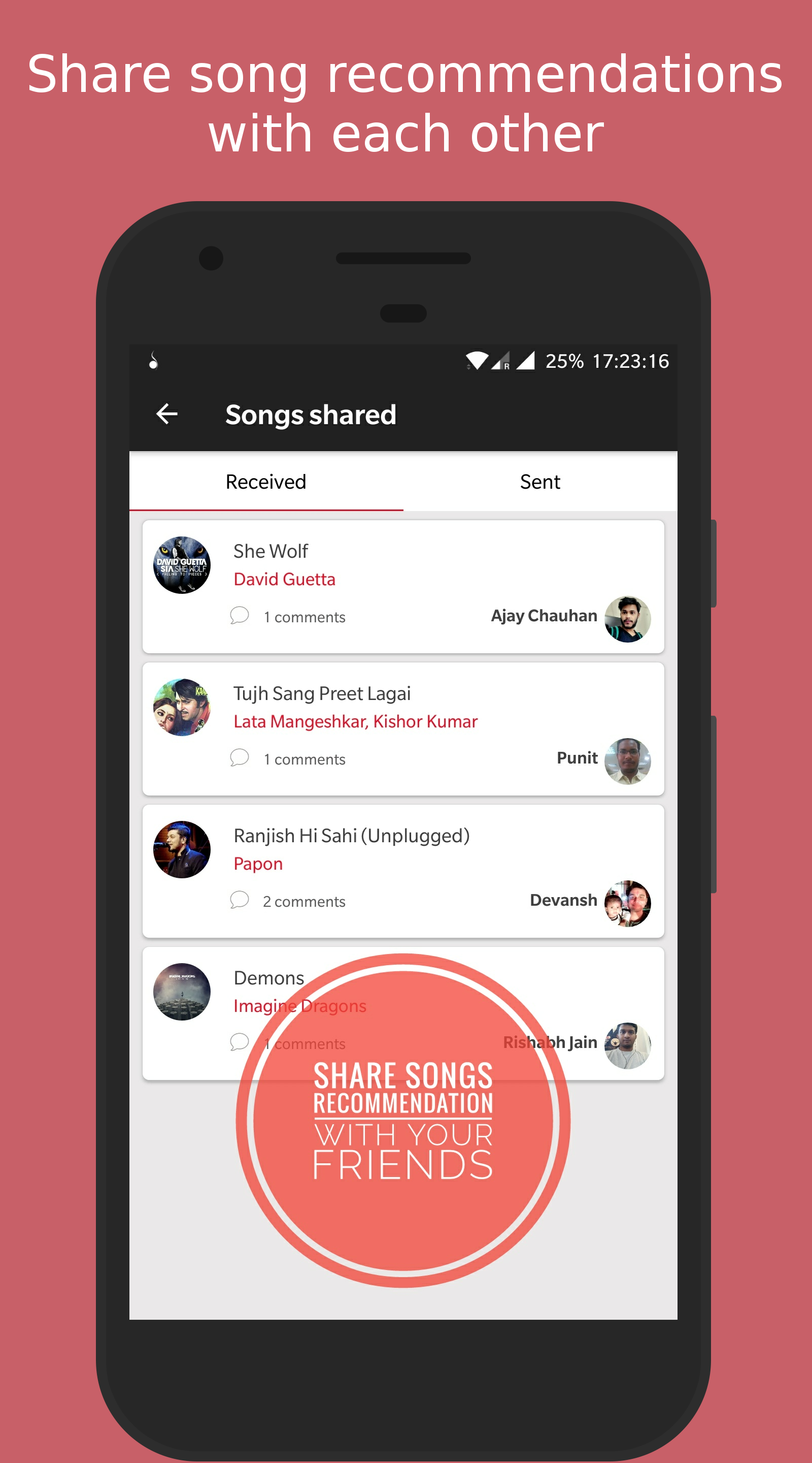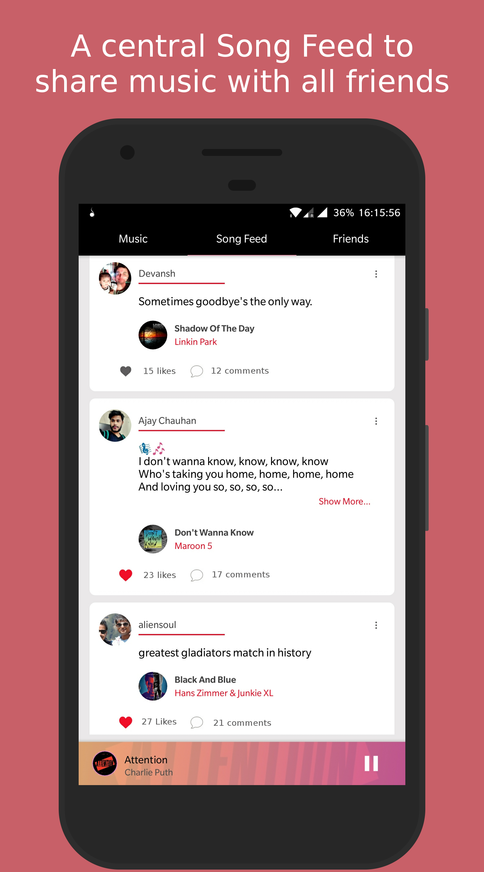 if you are a music fan and take your music seriously then you must have faced the problem of exhausting youtube, gaana, saavn etc, feel like you have listened to all the music they have to offer, i know i do. Actually problem is that in the world of so many social network we still lack a good social music player. So we(team of four) left our job, worked for six months and made an app just for this. We believe the bond that is made through music is special. In the world that runs on algorithms, get your music recommendations from humans. Please try it once. We would love to have you as our user. Play Store link- http://goo.gl/9B8ZFA Let us know if there is any issue, Thank you.