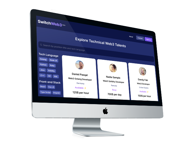 PROBLEM Global enterprises struggling with large-scale crisis. - More than +150,000 tech workers have been laid off this year and it’s getting worse. - Contrary, there are only 18.000 registered Web3 Developers worldwide, there is already talent shortage. - However, we are missing a pathway for tech talents and companies to transition to Web3. SOLUTION We flip the script and encourage talents to focus on their transition rather than wasting time seeking for jobs. We are forming alliances with HR referrals in order to automatically feature and refer exceptional stars in our community. - New job opportunities for tech talents - Highly adaptive tech community to cover Web3 industry. - Cultivating the transition through dev toolkits, education, vendor-market and strategic alliances. HOW IT WORKS 1st step: Pre-vetting call with talents (premium: AML Screening, Identity Assurance) 2nd step: Community Voting 3rd step: Approved talents to be listed at talent hub Talents continue to gain skill batches by completing the courses and certifications. FREE SIGN UP https://www.switchweb3.io/