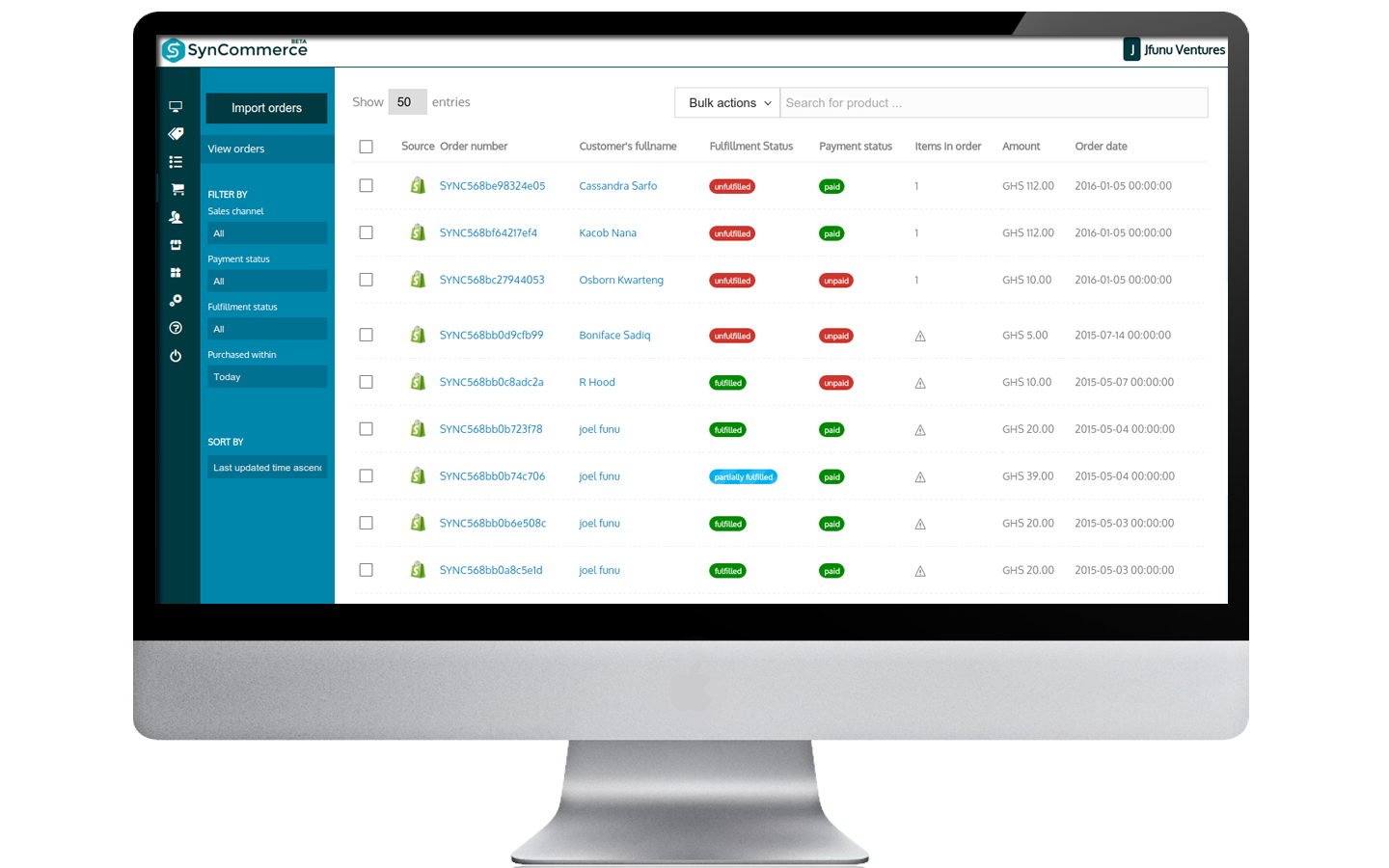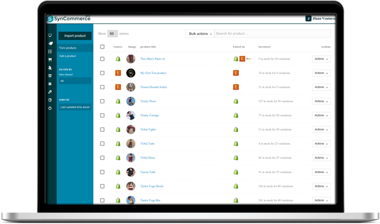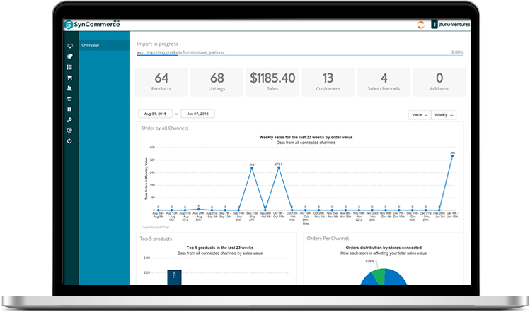 Easily manage your Shopify, eBay, Etsy, and Amazon stores from a central place. SynCommerce provides online sellers with the following; Powerful Synchronization In real time, the system automatically adjusts the inventory of your listings on other stores if a sale is made on any of your stores connected. Changes made on one store automatically get synchronized on the other stores you sell on. Hiding of zero inventory items Avoid overselling and out of stock situations. Set your preferences to instruct SynCommerce to hide or not hide your items when it hits quantity 0. Bulk Listing List multiple products to any of your connected stores in minutes with the bulk listing feature. And these multiple products can be published to all your connected stores at the same time. Quick and easy order fulfillment Monitor your orders from all stores and fulfill them in record time. You can as well integrate with third party platforms such as ShippingEasy to quickly fulfill all your orders.