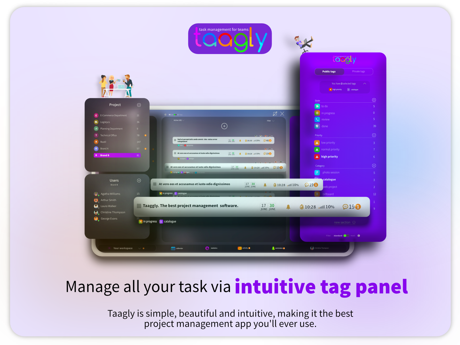 Taagly is a software for managing tasks and projects via an intuitive Tag Panel. Taagly redefines the concept of task tagging in projects. By default, the tagging module functions as an add-on, often deeply hidden, so it is difficult to use its potential. For Taagly, task tagging is the key to more efficient management, so it has been made the main tool that is always at your fingertips.