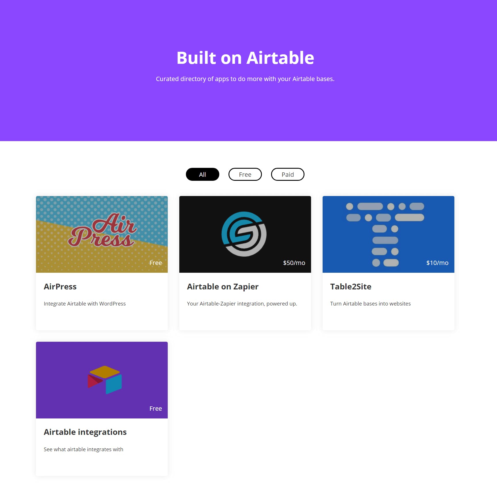 Table2Site allows you to create no-code websites and uses Airtable as a CMS. You just have to add settings and content to your Airtable base and Table2site takes care of the rest ?. ?It's perfect for: - "Curated list for X" websites - Small websites - Coming soon pages ? Some notable features: - Add newsletter signups (via Mailchimp) - Add dynamic lists/cards - Add contact forms - Connect your own domain
