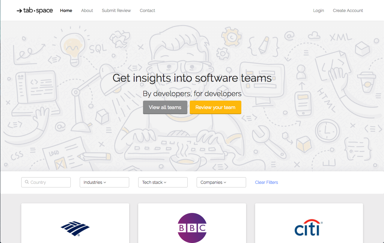 We are launching Tabspace to give software developers insights into engineering teams directly from their peers. When developers are searching for a new role they might have to go through a technical screening call (0.5 hrs - 1 hr) and code challenge (3 hrs - 4hrs) before getting a chance to speak to the company about the team, the role and the company's approach to engineering. Often, we only discover the things that might matter to us and that can have an impact on our satisfaction after we have started in the role. In essence, Tabspace is all about rebalancing the information asymmetries that currently exist in the tech hiring process and helping you make more informed career decisions.