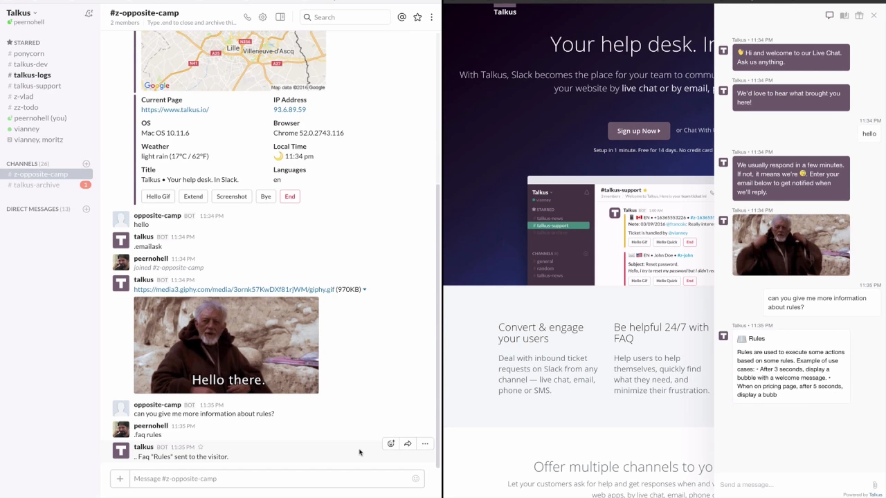 Talkus offers a complete customer success solution to engage and support customers. Talkus was founded in France in 2015. The company has offices in Paris, France and Princeton, NJ, USA. Talkus helps SMB offer amazing customer experiences. This provides our clients with a strategic differentiator and a competitive advantage. Talkus stands for more human engagements and personal conversations. With Talkus these can start on a live chat, a Twitter or Facebook message, continue on email or via text messages and even on the phone. The company is building the next generation of AI-powered bot to unclutter helpdesk, cut costs and drive efficiencies while delivering better, faster and more personal support in real-time. http://www.talkus.io [email protected]