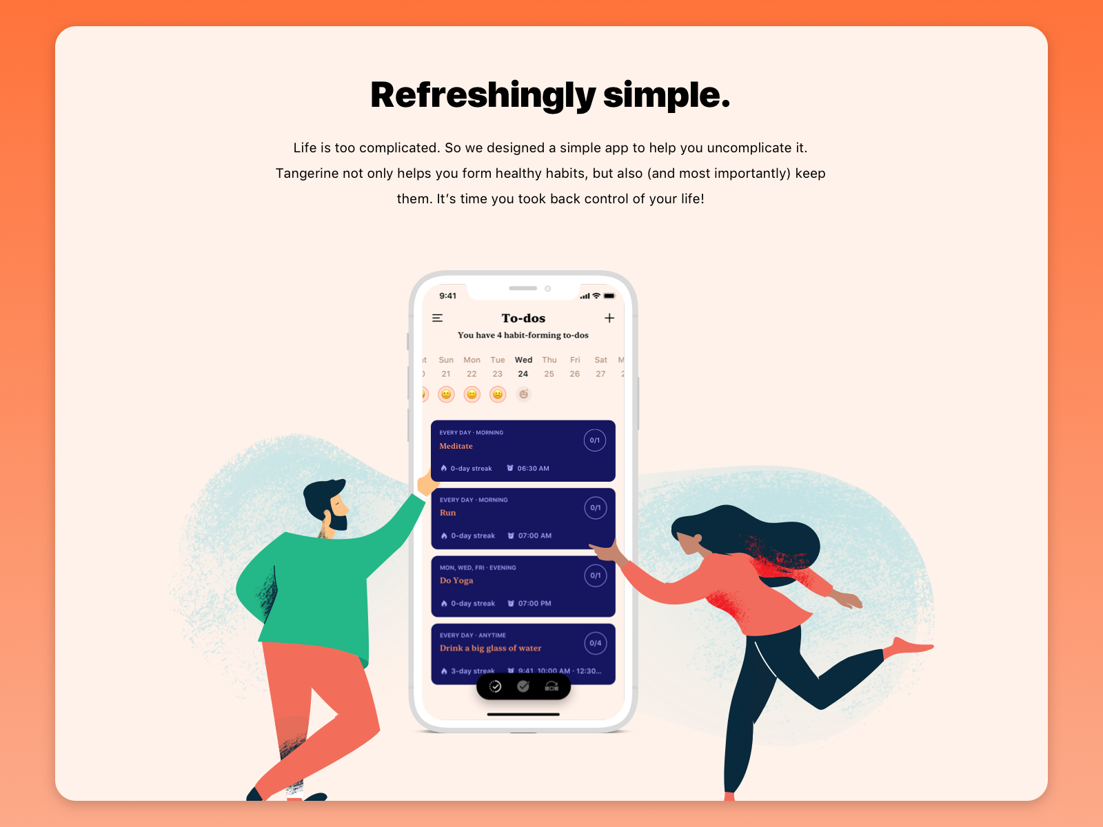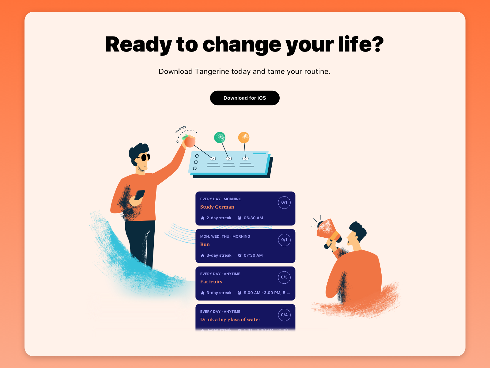 Tangerine is a simple habit and mood tracker that helps you organize your routine, achieve your personal goals and reflect on your life. We're launching soon and we are looking for beta testers to help us shape the product. Sign up today and be an early user :)