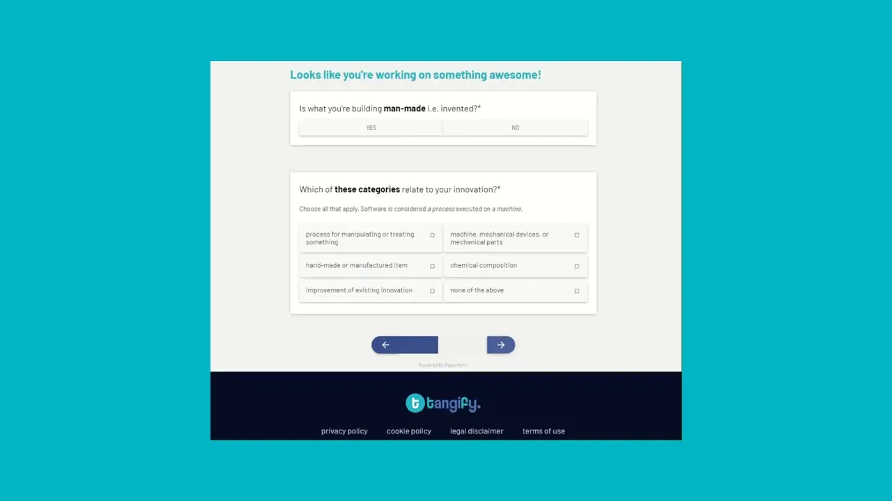 Figure out if your idea can be patented in <5 minutes, without requiring confidential information. Answer a few questions, then hit submit to see your results. FREE to try.