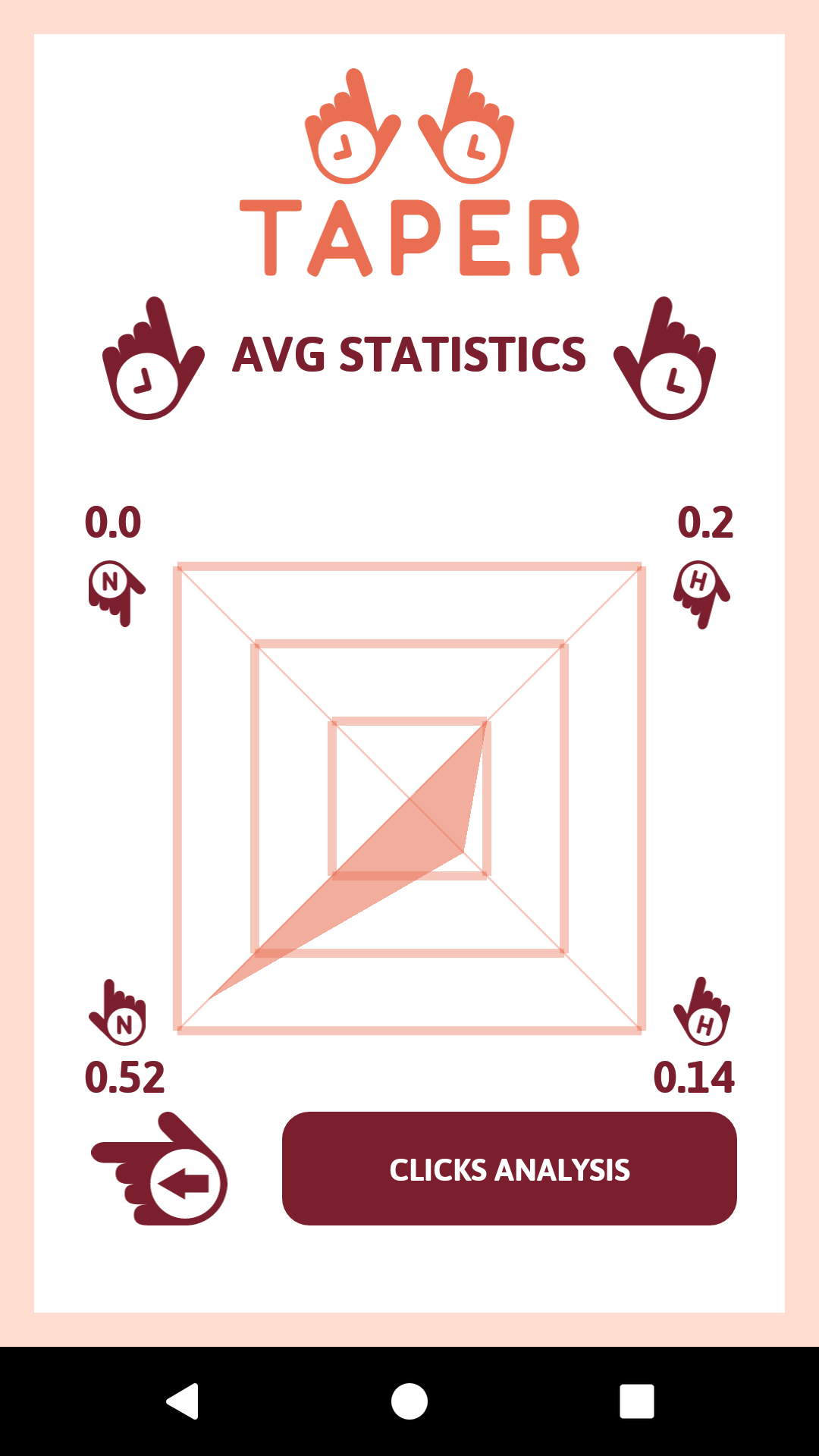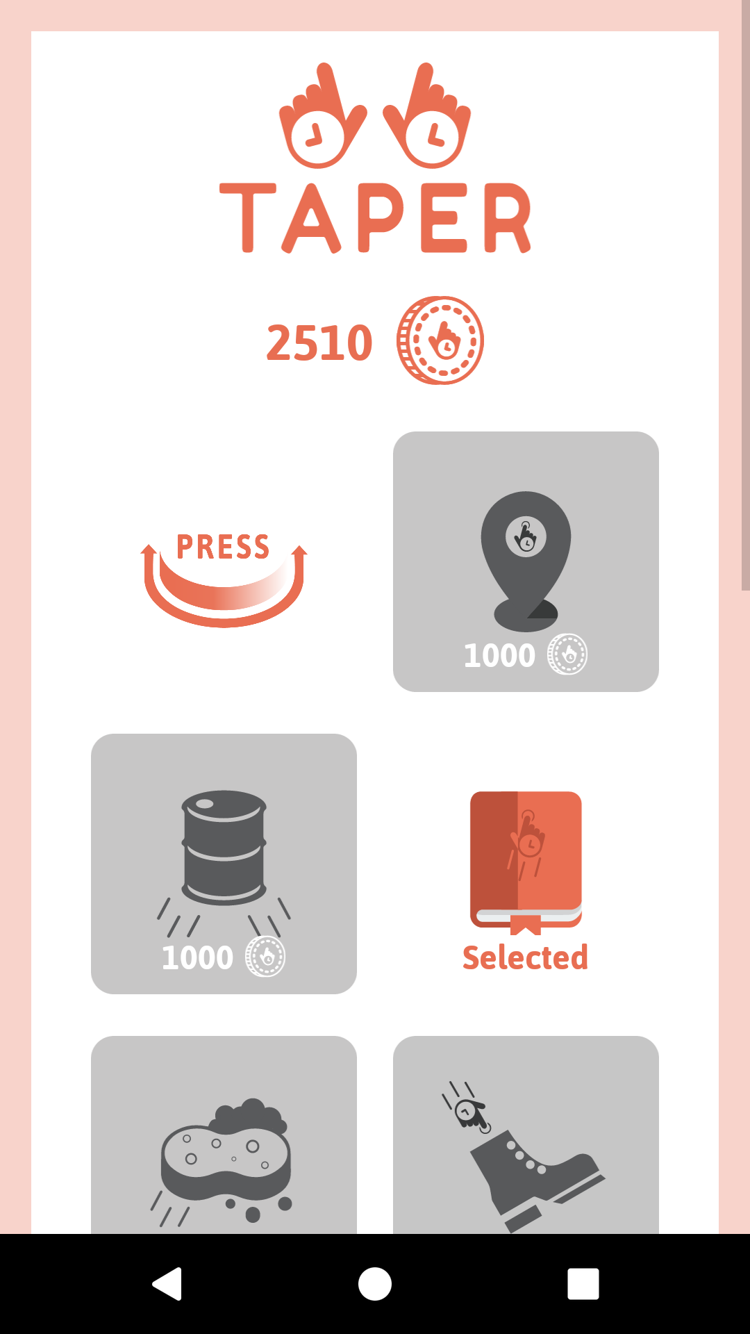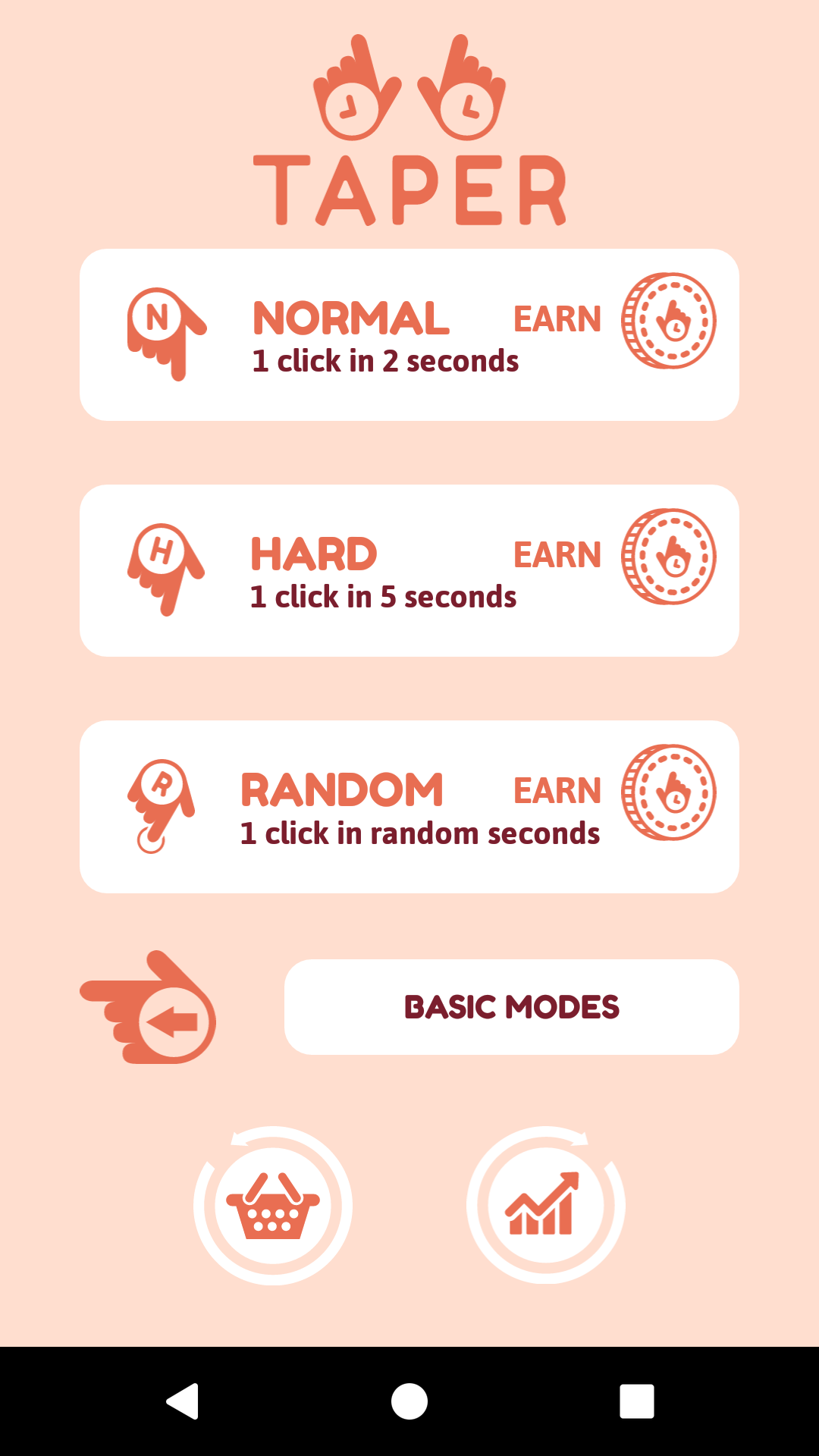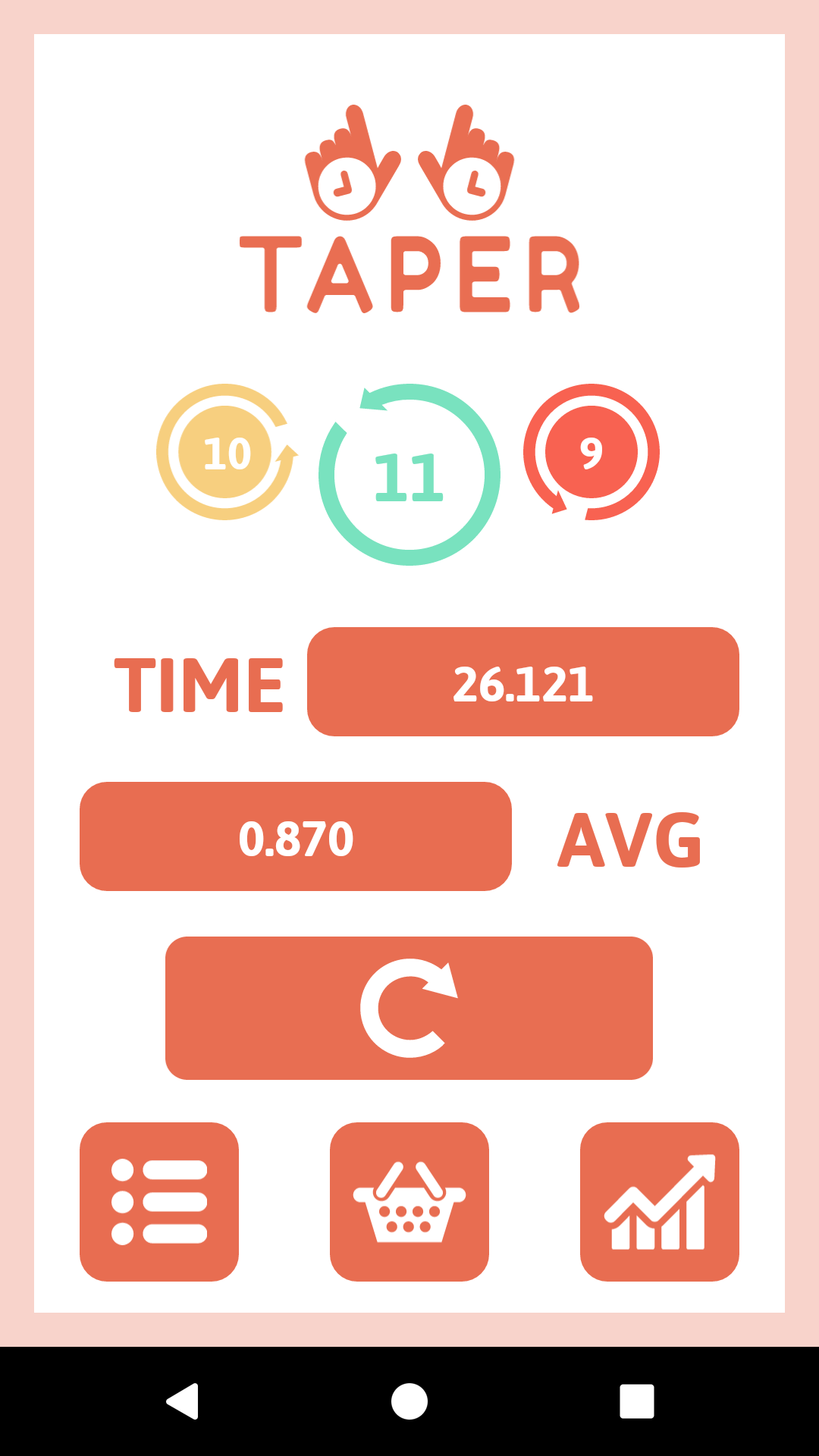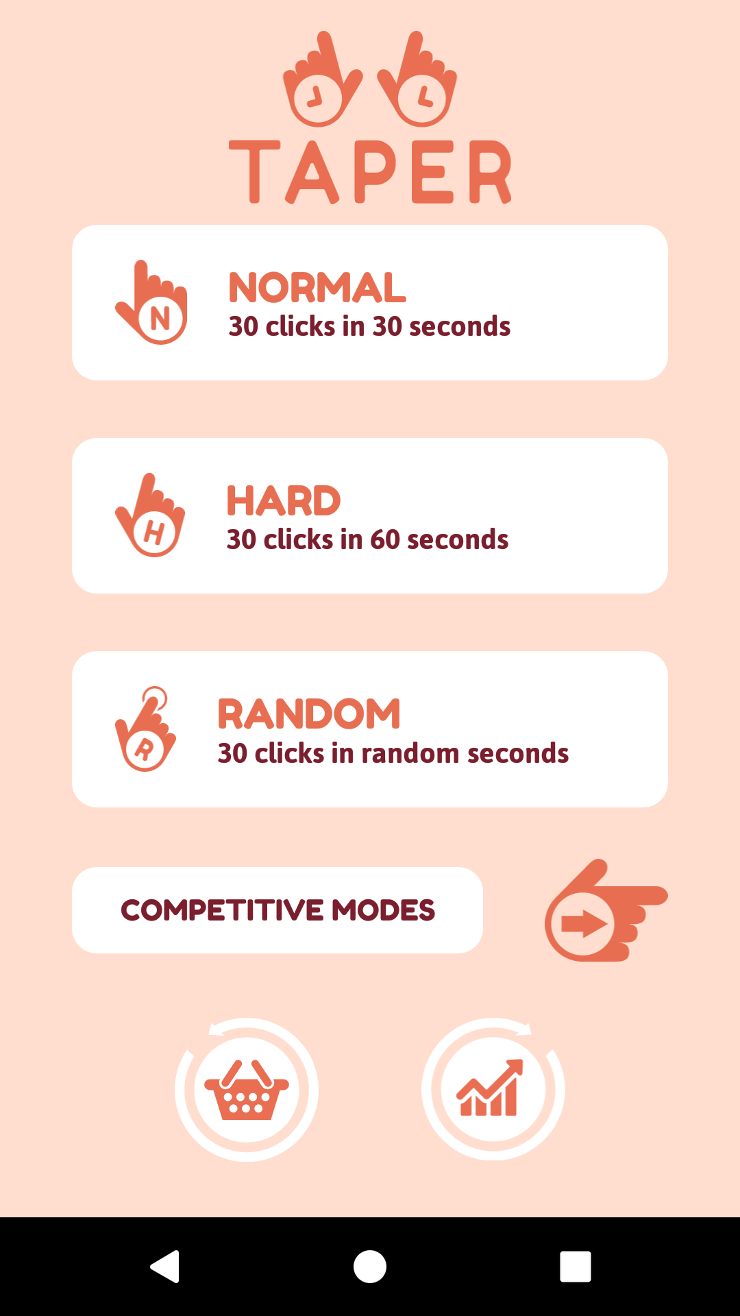Taper is my first Android app. While constantly browsing android games I have noticed a clear deficiency of focus increasing apps. Most of them actually were counterproductive. This is why I decided to add real life interaction to my game. Now user can become aware of passing seconds, while playing a game! The mechanics of Taper are really simple, but actually require a lot of attention. The key to gaming is to count seconds as accurately as human possibly. The game will require to click button 30 times in a row within only 1 second per click. This is really difficult, but definitely increase attention. There are 6 different game modes, so everyone will find the most interesting one. Also, player can buy new skins or track his progress watching analysis. I believe that this game is worth trying. It really increases your ability to stay present, which is necessary in our developing world.
