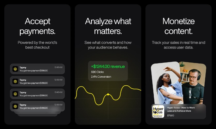 Tapmy is a simple monetization tool for creators who want to turn their audience into income. Instead of just sharing links, creators can sell digital products, accept tips, promote affiliate offers, and manage everything from one clean, customizable page. Perfect for: • Instagram creators • TikTok influencers • Coaches & consultants • Digital product sellers With Tapmy you can: – Create a personal bio page in minutes – Add paid content or services – Collect payments – Track performance – Monetize traffic without complicated setups No coding. No complex funnels. Just one smart link that works.