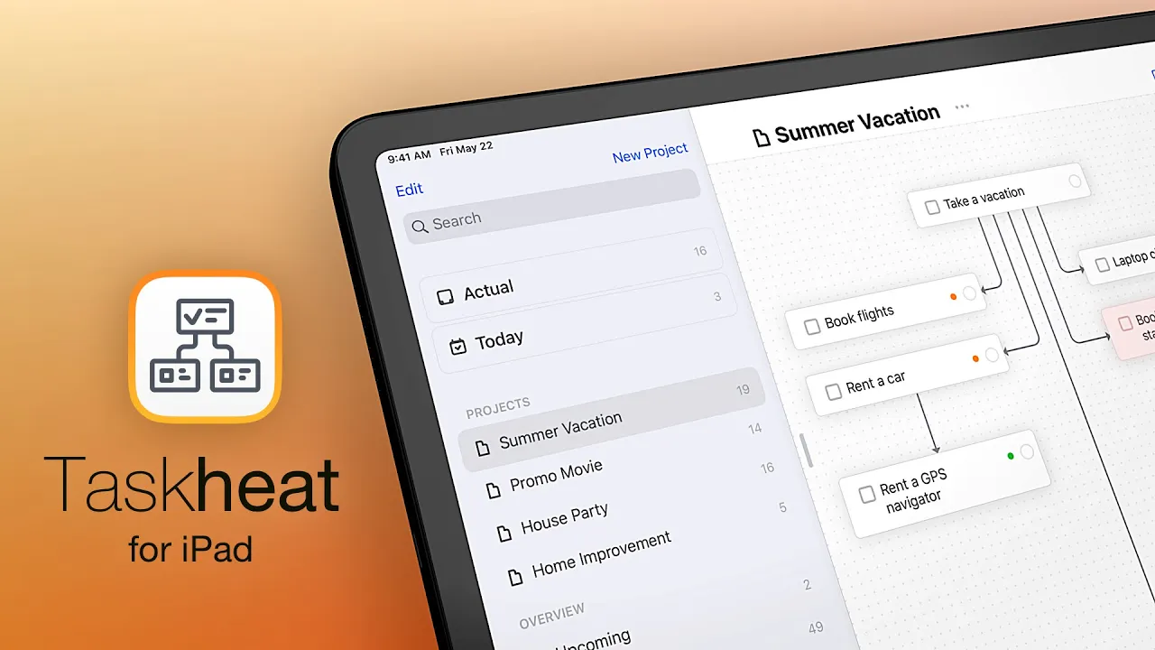 Taskheat is a unique tool that mixes traditional task management with flowcharts. Unlike the conventional to-do list applications, it represents projects visually in the form of a flowchart that shows the idea of task dependencies and their order of execution. Taskheat makes comprehending the workload and finding a path to a specific goal easier. As a result, people can start their path from to-dos that are relevant now and don't have any dependencies. These tasks are gathered under the Actual filter that represents the app's core idea: to shrink an endless to-do list into a comprehensible set of tasks ready to be performed one at a tim