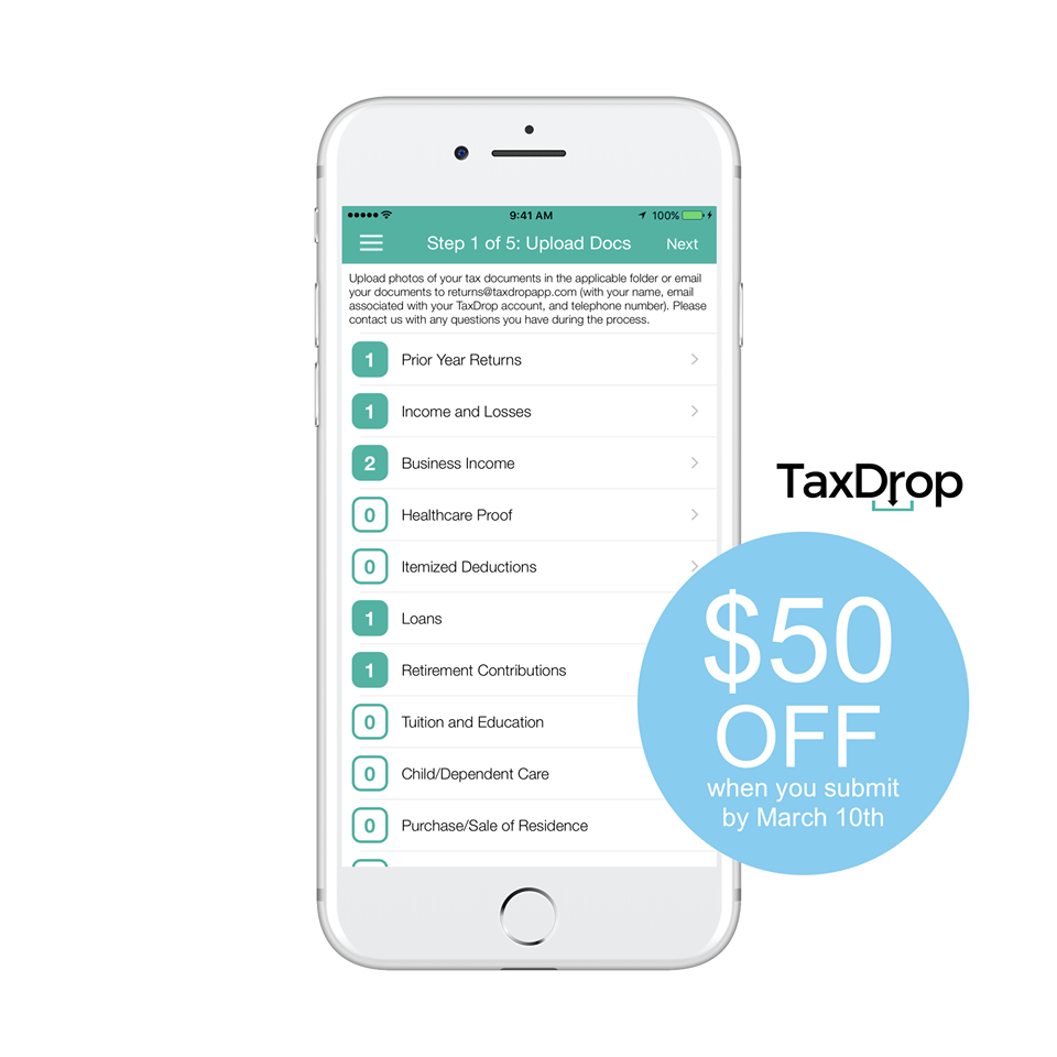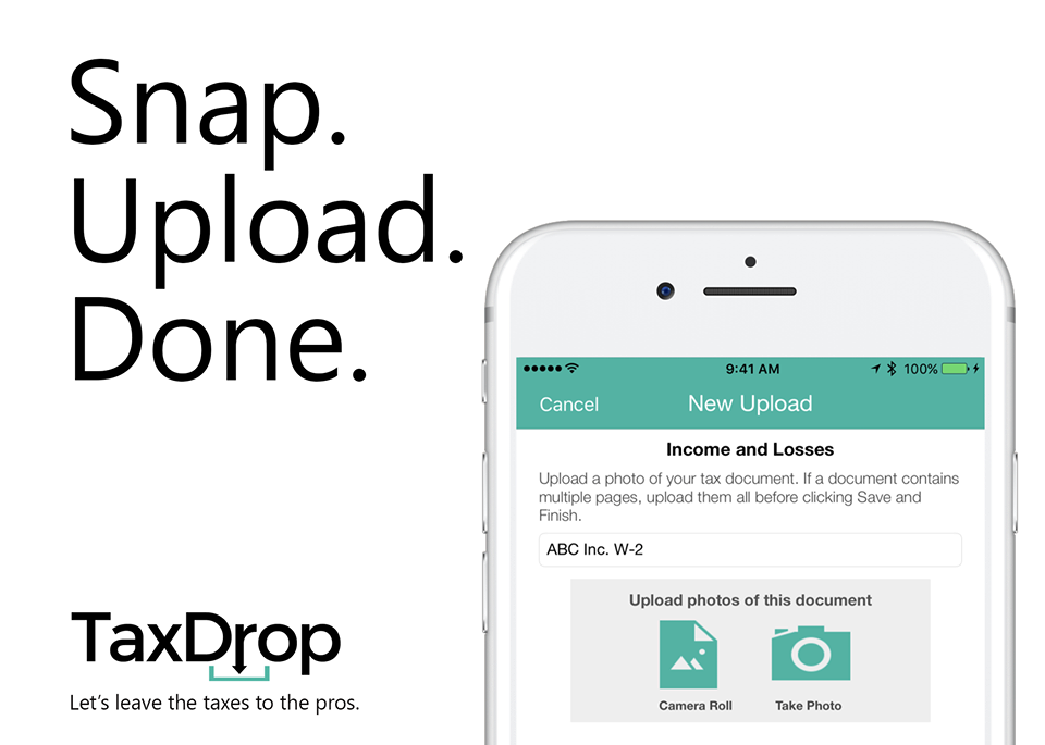 TaxDrop for iPhone and iPad is a free download that connects you to a Certified Public Accountant (CPA) right from your phone. Gone are the days of wondering whether your income tax return was completed accurately. Let TaxDrop help you with planning that software and computers can’t do. TaxDrop for iPhone 1. Upload photos of your tax documents (e.g. Form W-2) 2. Create your user profile 3. Send to TaxDrop and a CPA will prepare your return 4. Pay for your completed return on the app