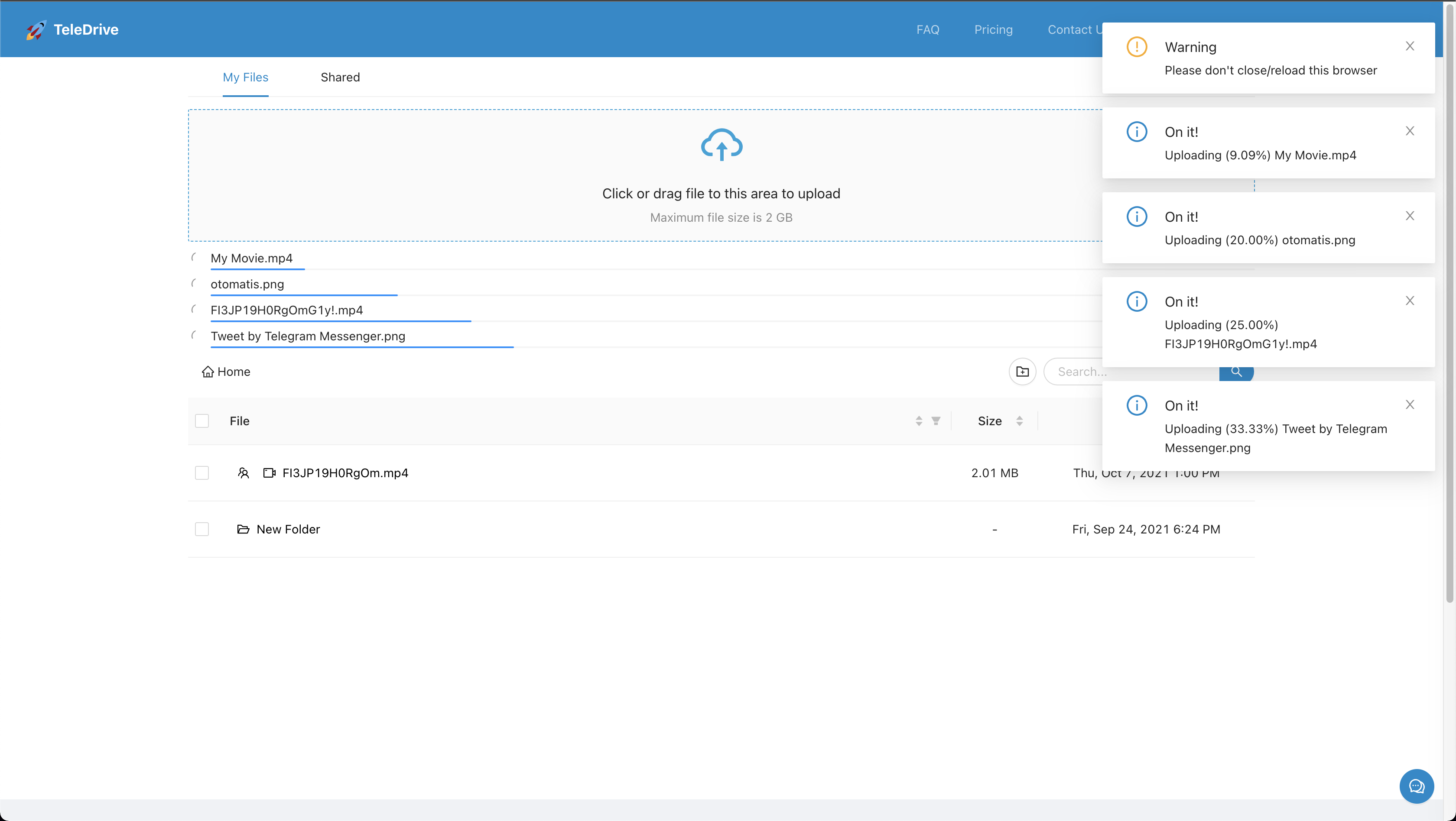 What if...? We have unlimited cloud storage for our files and documents. This is the open-source project to give you what you deserve. Using the Telegram API as your unlimited storage. So, you can upload as many as you want without any limit ?