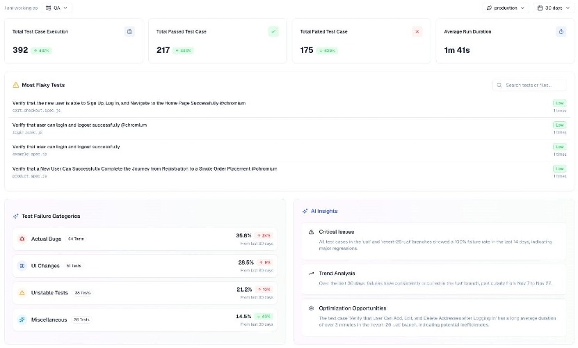 TestDino is an AI-native, Playwright-focused test reporting and management platform with MCP support. It lets developers use Claude Code, Cursor, or other LLM tools to query reports, analyze flaky tests, compare runs, and manage test suites using natural language. Our native GitHub integration posts AI summaries directly to your PRs and commits, while CI Checks block merges when tests don’t meet your quality gates. Re-run only failing tests with a single command, cutting CI time and costs significantly. Pull Request tracking links every test run to its commit. Branch mapping organizes runs by environment. Role-specific dashboards show QAs flaky tests and failure patterns, while developers see exactly which tests their commits broke. Every test run comes with AI-driven failure classification with a confidence score and recommended fix. The Specs Explorer highlights which test files need attention, and error analytics group similar failures so you fix root causes instead of chasing individual symptoms. Connect Jira, Linear, Asana, or Slack to create bug reports with full context pre-filled.