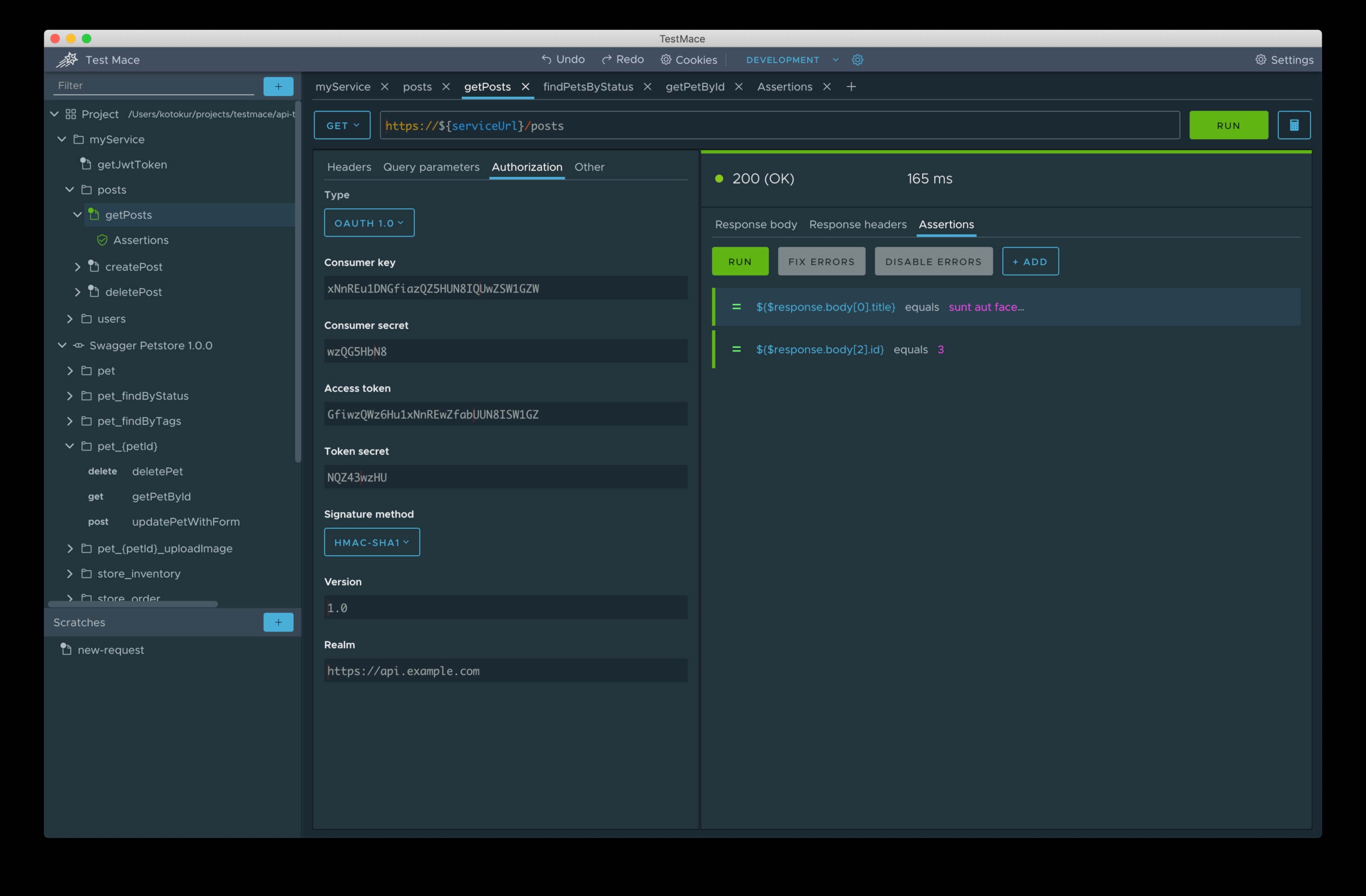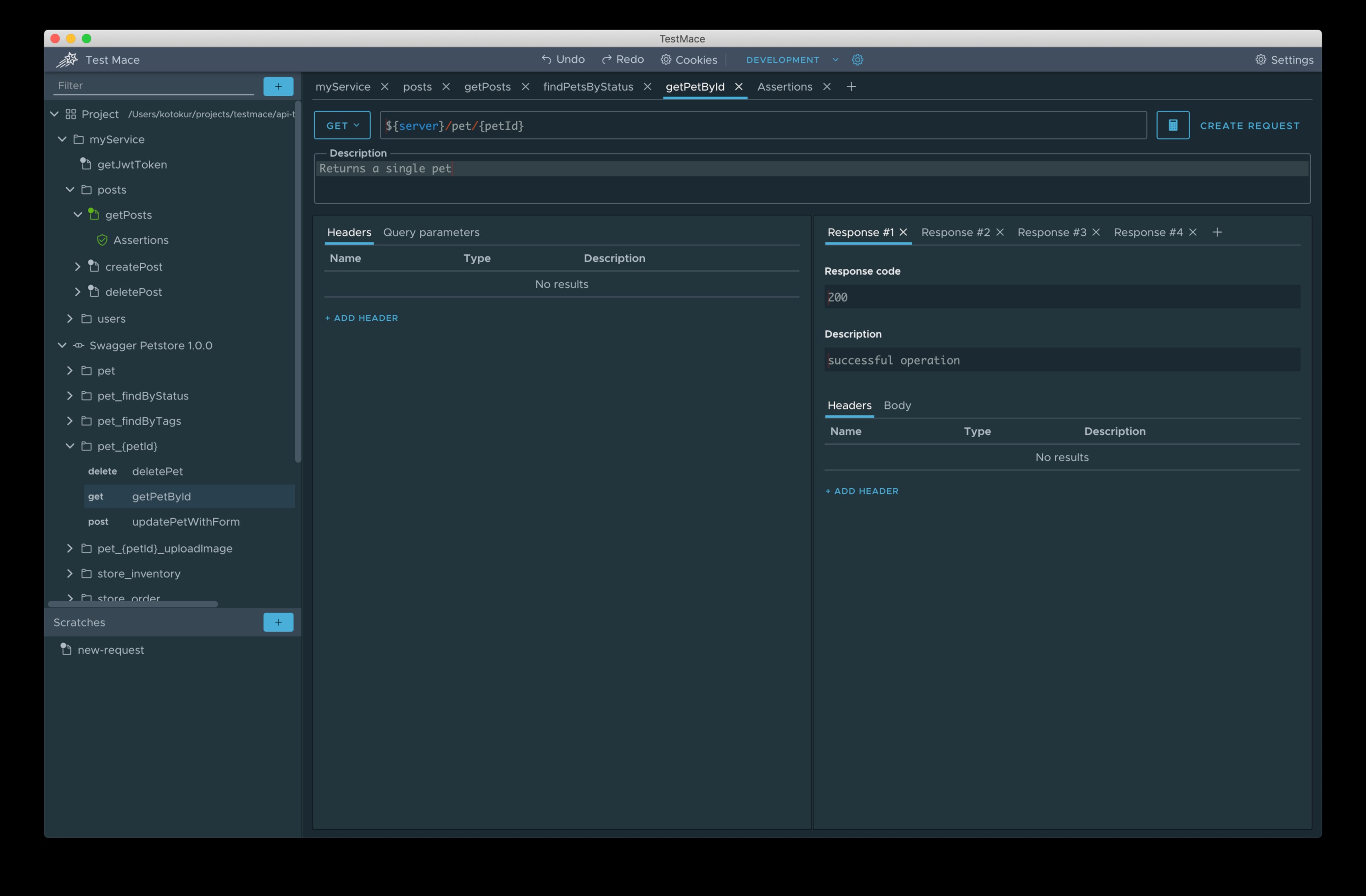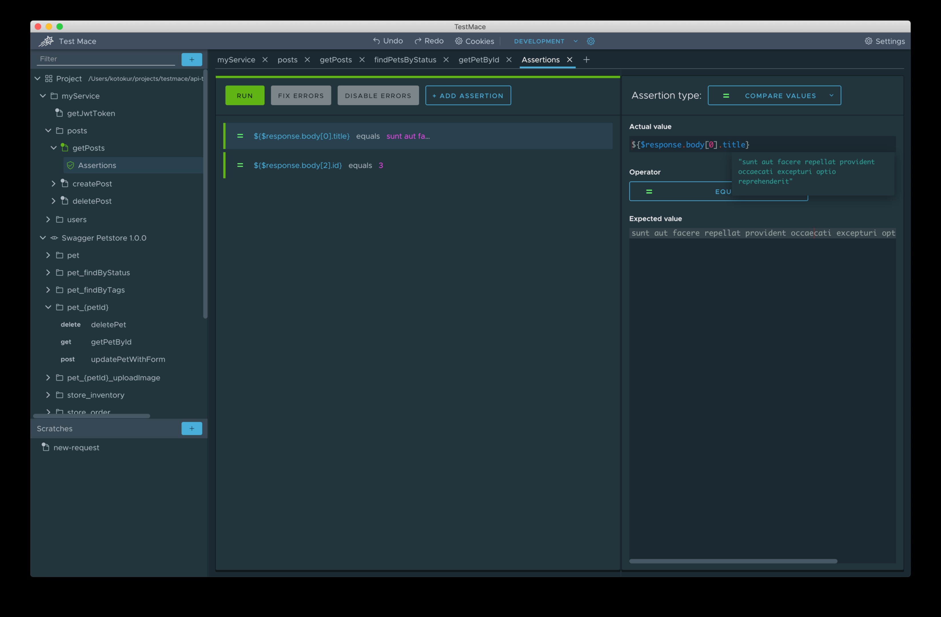 TestMace is an IDE to work with API. Harness the power of scenarios, autocompletion and syntax highlight for API development. Write tests, share code without leaving the comfortable development environment. TestMace is available for Windows, Linux and MacOS