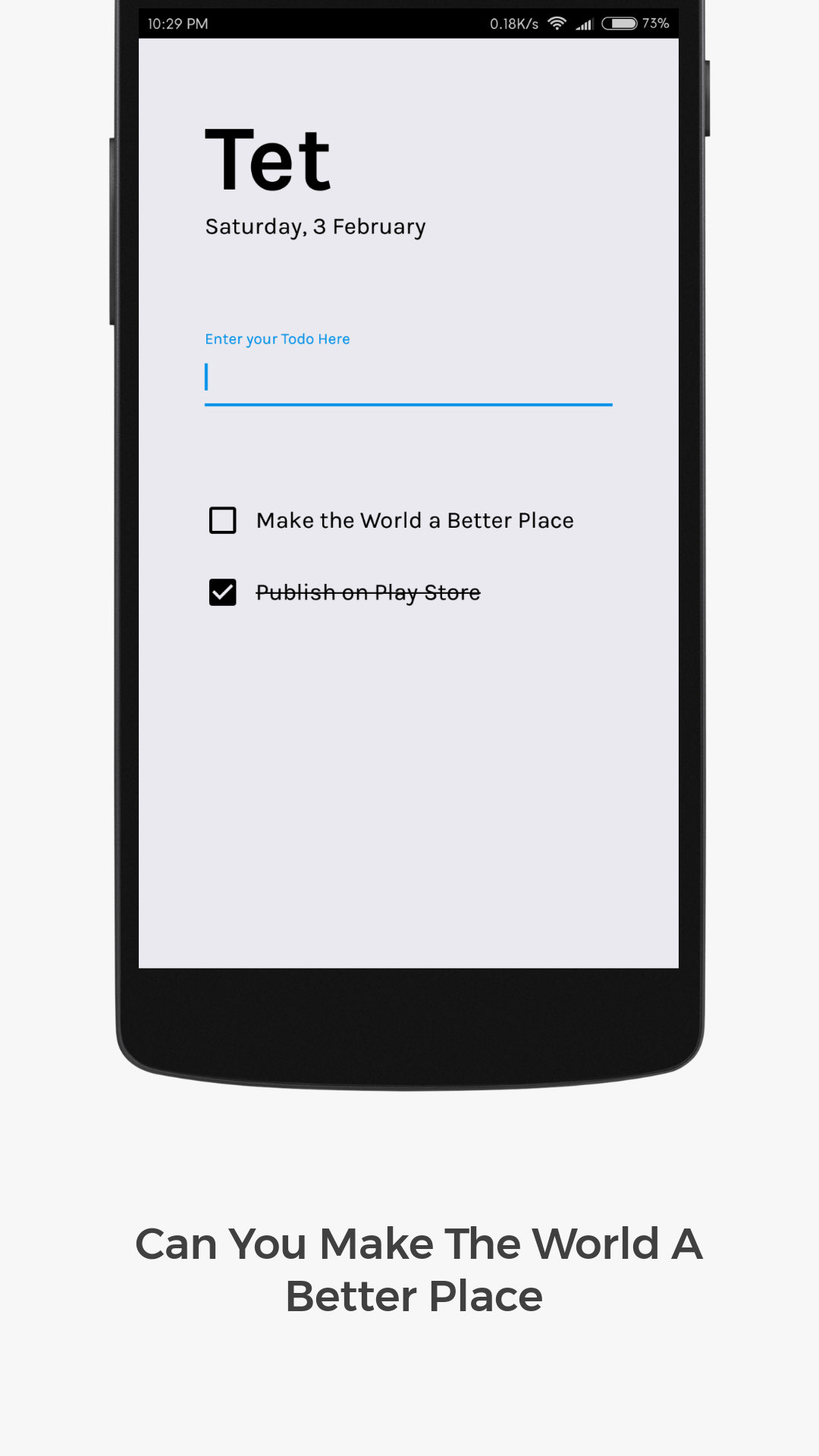 Tet is a todo list app. Tet deletes your unfinished tasks by the end of the day. Finish your tasks before Tet eats them alive