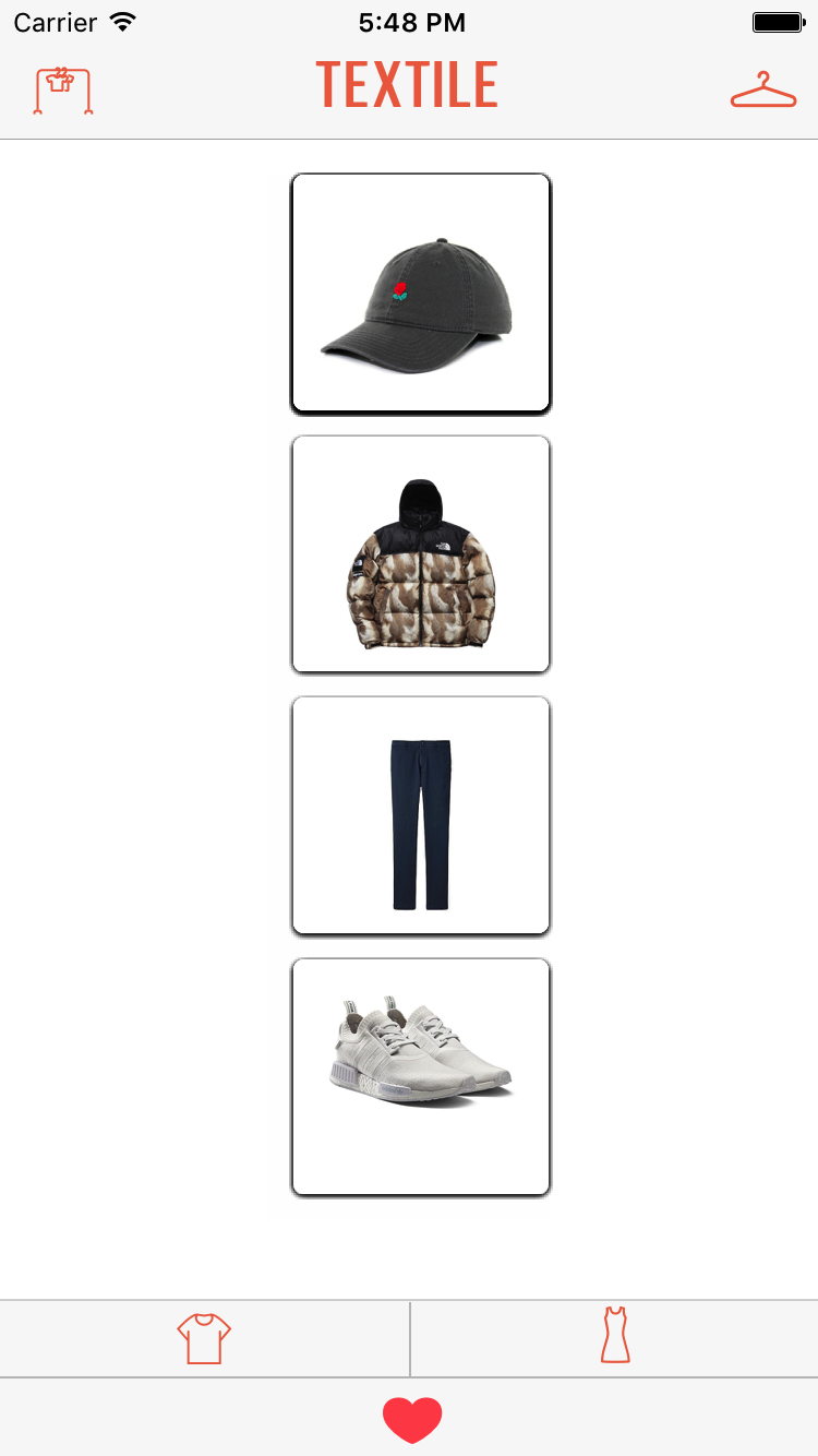 Textile is a completely new way to find what to wear. A simple app to organize your day to day outfits - upload photos from your own closet or found online to test out different color schemes and styles. Intuitively swipe through the four tiles to see how different pieces look together. Get a head start in the morning, and eliminate clutter with Textile.
