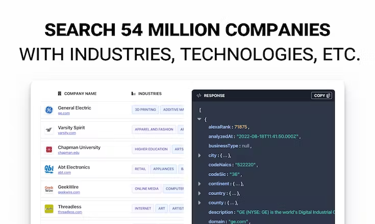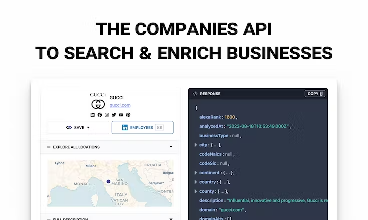 The Enrichment API To Search 54 Million Companies & Their Employees. Take Advantage Of Our Algorithms To Enrich Information About Companies And Their Employees. Our Enrichment API Is Updated Daily So You Can Confidently Enrich Your Data.