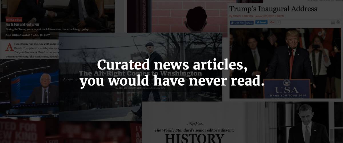 The Counterpart - Curated news articles, you would have never read. The Counterpart is your new fortnightly email newsletter, designed to help you break out of your echo chamber. Completely personalised for you, each issue contains a handful of carefully curated news and opinion pieces which will broaden your horizons and challenge your beliefs.
