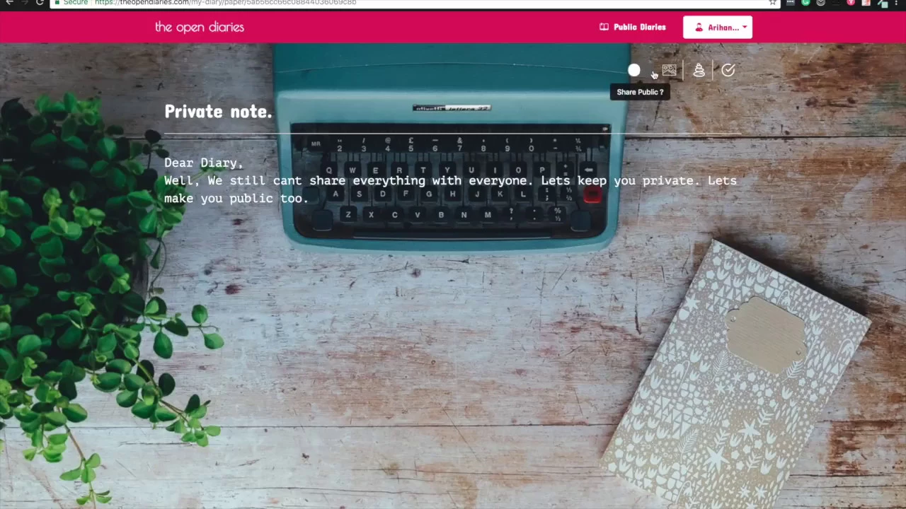 All of us have thoughts cluttered in our minds, and sometimes, all we need is a vent to nudge them out... With The open diaries, we want to help people do just that; reflect on their thoughts. Why open, you may ask? Well, sometimes, people just want to be heard, and not be Judged. Be it a joy or sorrow, to know that there are others just like them in this world echoing the same thoughts in their head, is a wonderful feeling to have. For those of you curious about our business model, let me tell you a secret :) There is no business model! Its a not for profit, free forever app. I created this app with the intention of helping people by listening to them, knowing how the world is like for them. And letting people know what it was in this world "To Be You". It is an app/website for writing a diary in a clean, beautiful space, allowing you to share your stories with others. You can also change the theme to set your mood. You can send letters to your future self 5 or 10 years in advance. You can also keep your notes private.